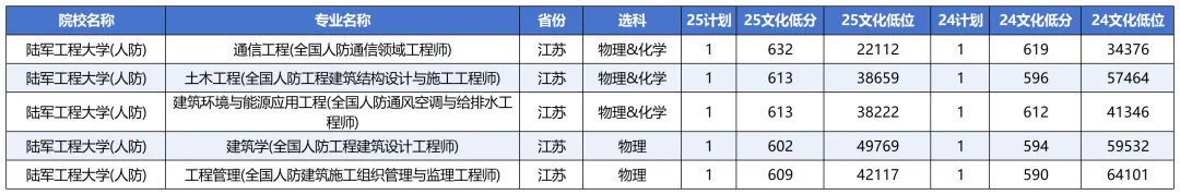 2025年在浙江人防方向招生计划为5人,要求高考成绩不低于普通类一段线。学员入校后不参军,为全国人防系统定向培养,毕业后面向人防系统自主就业,录取分数稳定。