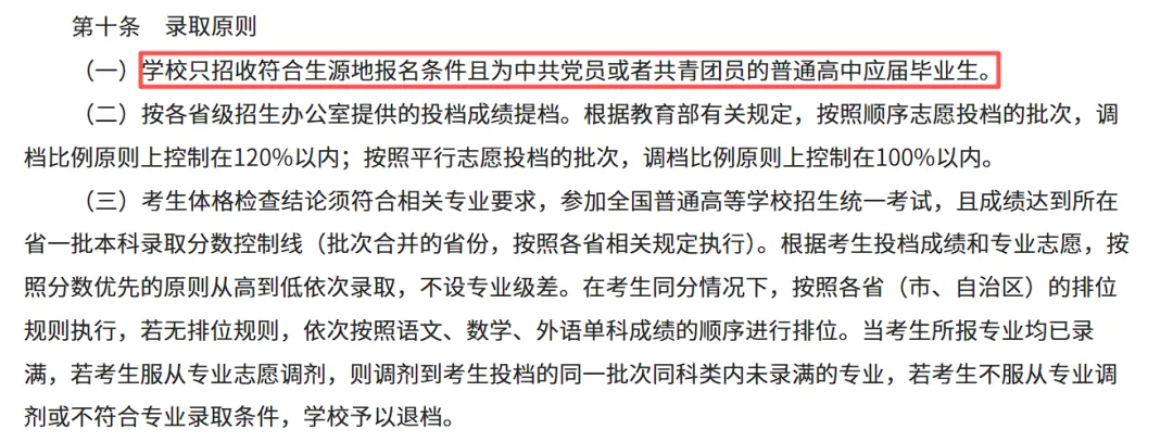 在志愿填报中,一类设有“特殊门槛”的高校常被忽略—它们限定中共党员(含预备党员)或共青团员报考,且多为直属中央、军队的顶尖特色院校,手握专属就业通道,职业稳定性拉满。以下为这类院校的详细梳理,供考生和家长提前了解、收藏。