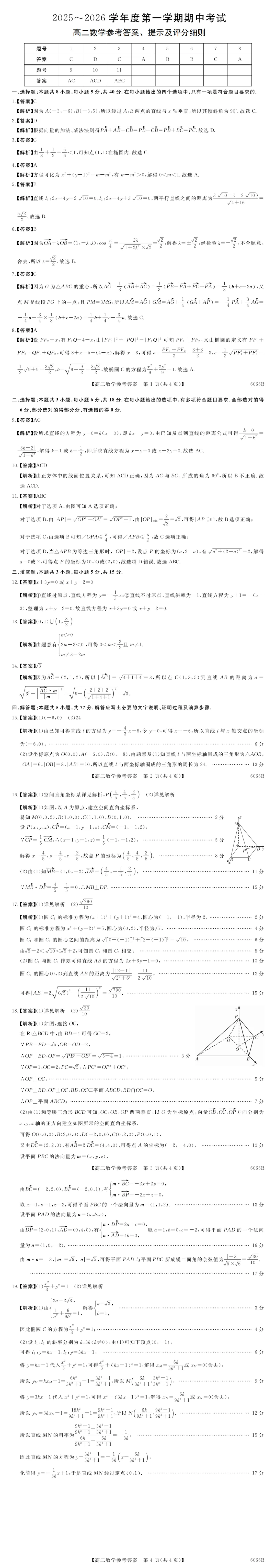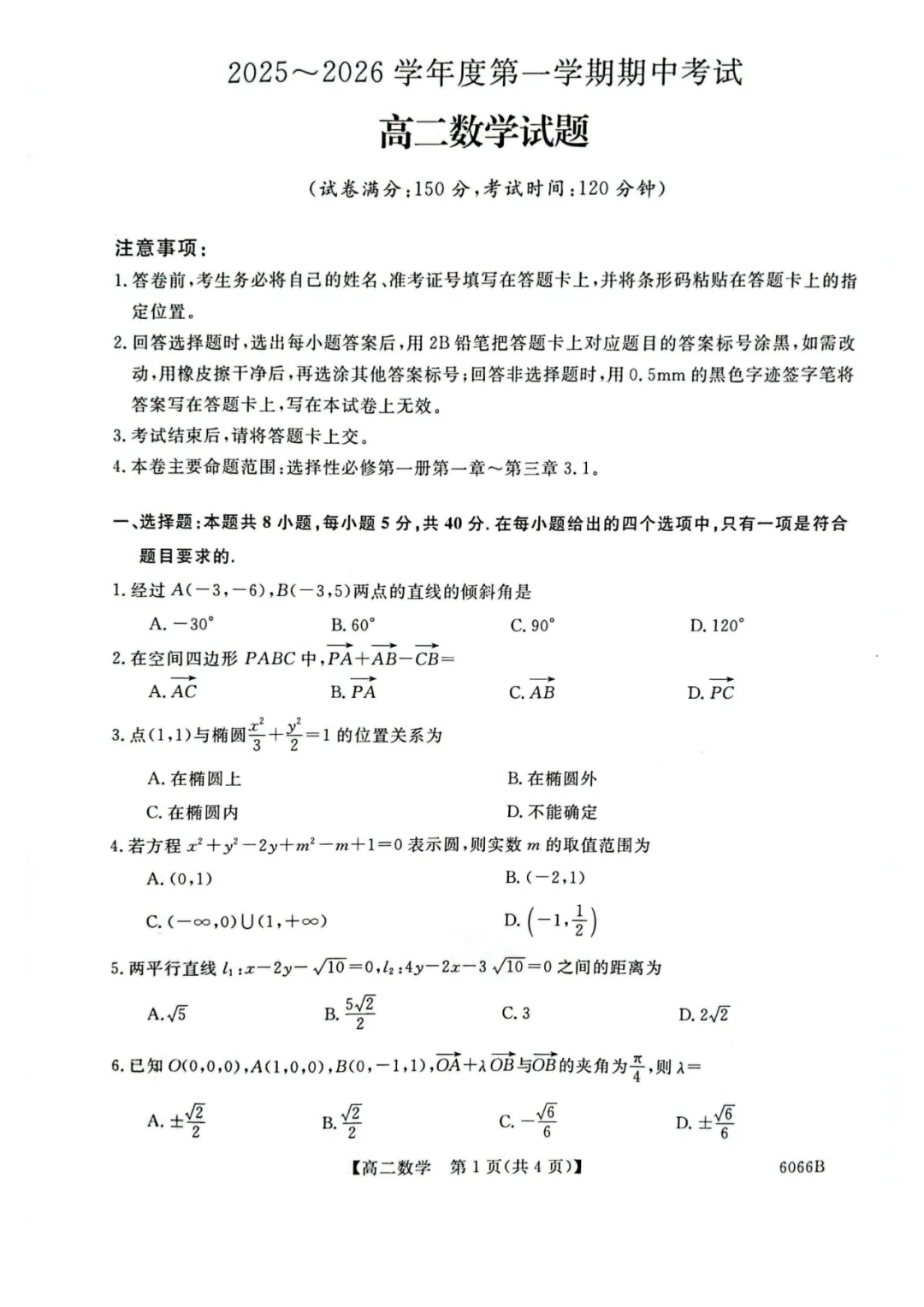 吉林省联盟校考试2025-2026学年高二上学期10月期中数学试卷