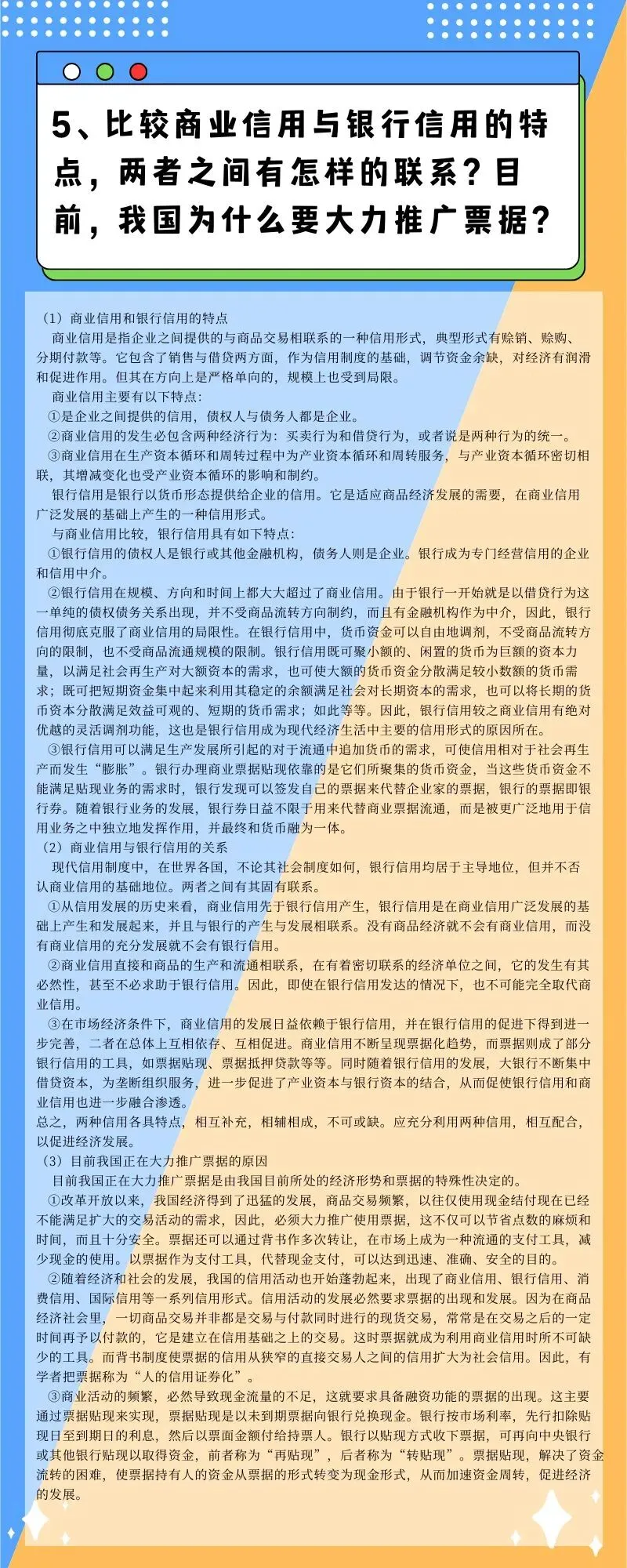 5、比较商业信用与银行信用的特点,两者之间有怎样的联系?目前,我国为什么要大力推广票据?