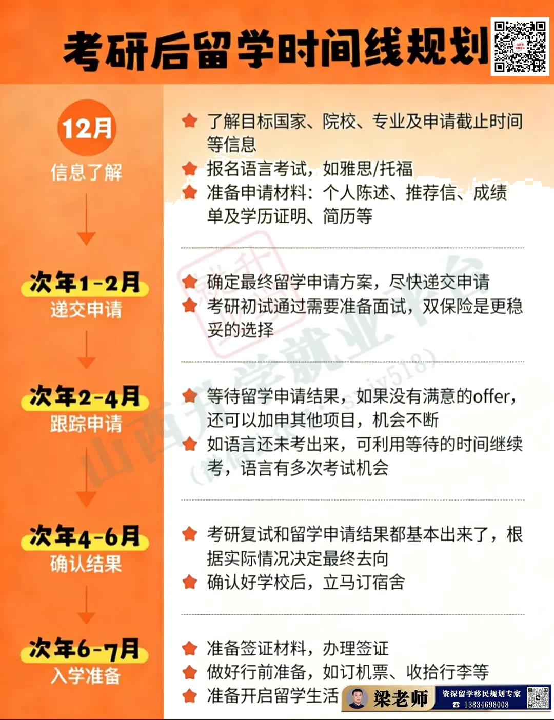 因为考研时有积极准备英语,有一定基础,剩余时间你可以集中精力备考雅思。柳橙中介老师会密切关注你的雅思备考进度,提醒你抓紧时间冲刺。