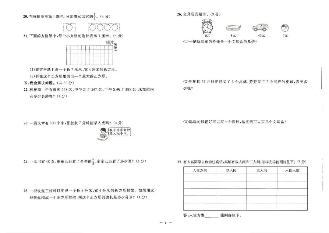 25秋三年级上册人教版数学《各地期末考试真题检测卷》共14套(附答案)高清电子版可打印