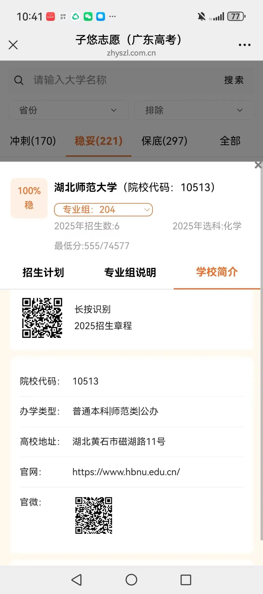 识别左侧二维码,查大学、查专业