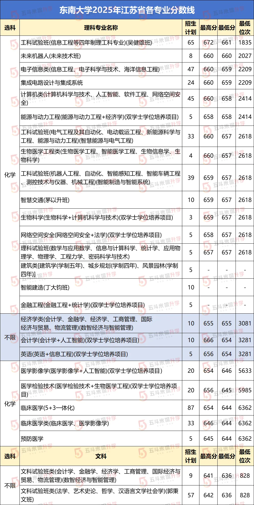 近日,东南大学官方公布了2025年各专业录取分数线,一起来看: