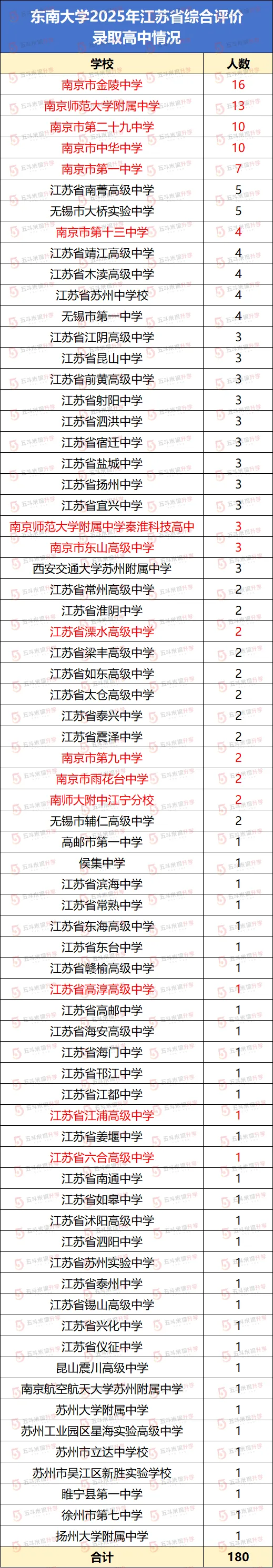 综合评价方面,2025年东南大学综合评价计划招生180人,南京高中共录取77人,占比43%。