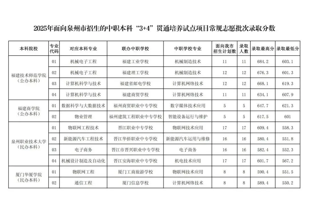 福建商学院的情况类似,换个说法就是:泉州中考600分出头的成绩填报中本贯通就能免高考,保送500分档的公办本科,难度差距显著。