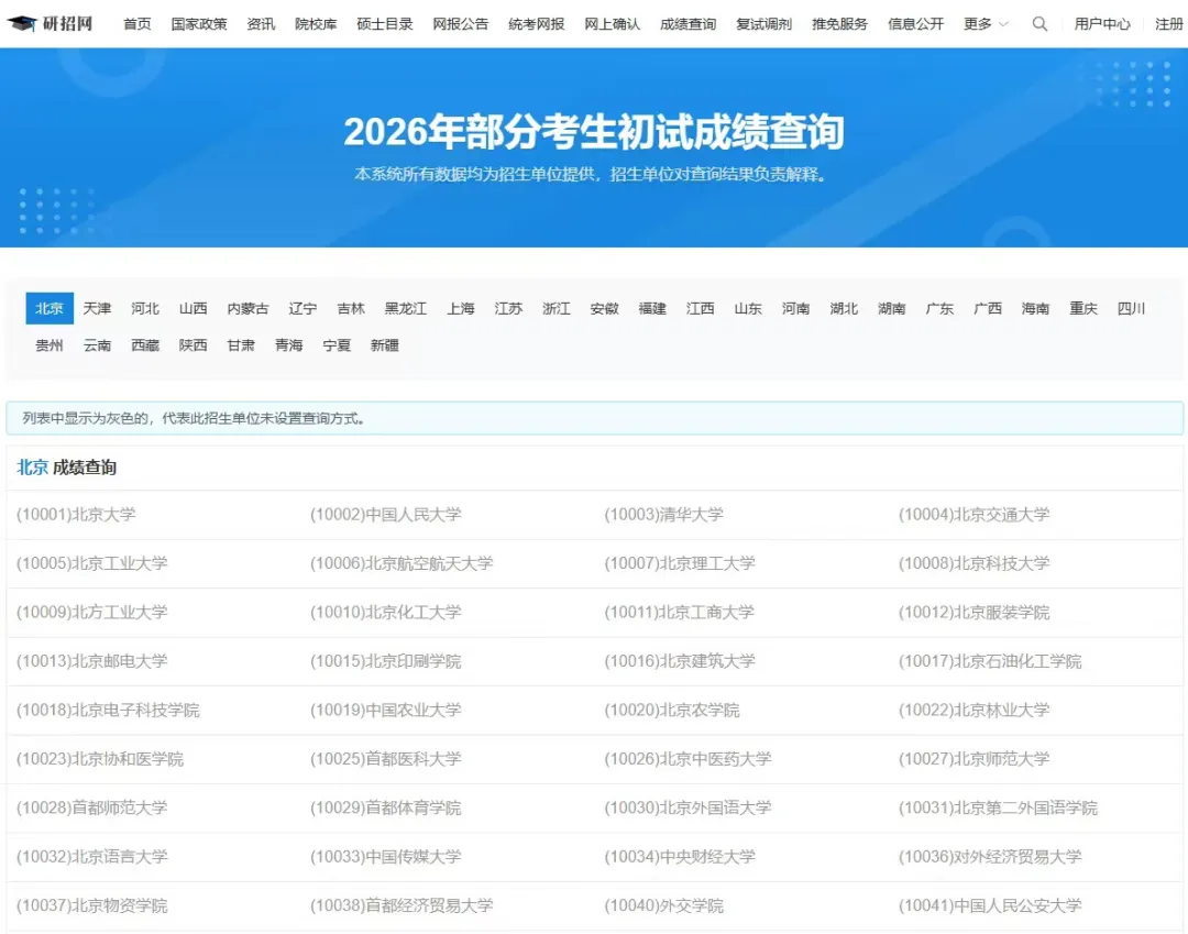 考生报考院校所在省份的教育考试院官网也会提供成绩查询服务。请注意,这里指的是报考院校所在地,而非你参加考试的地点。