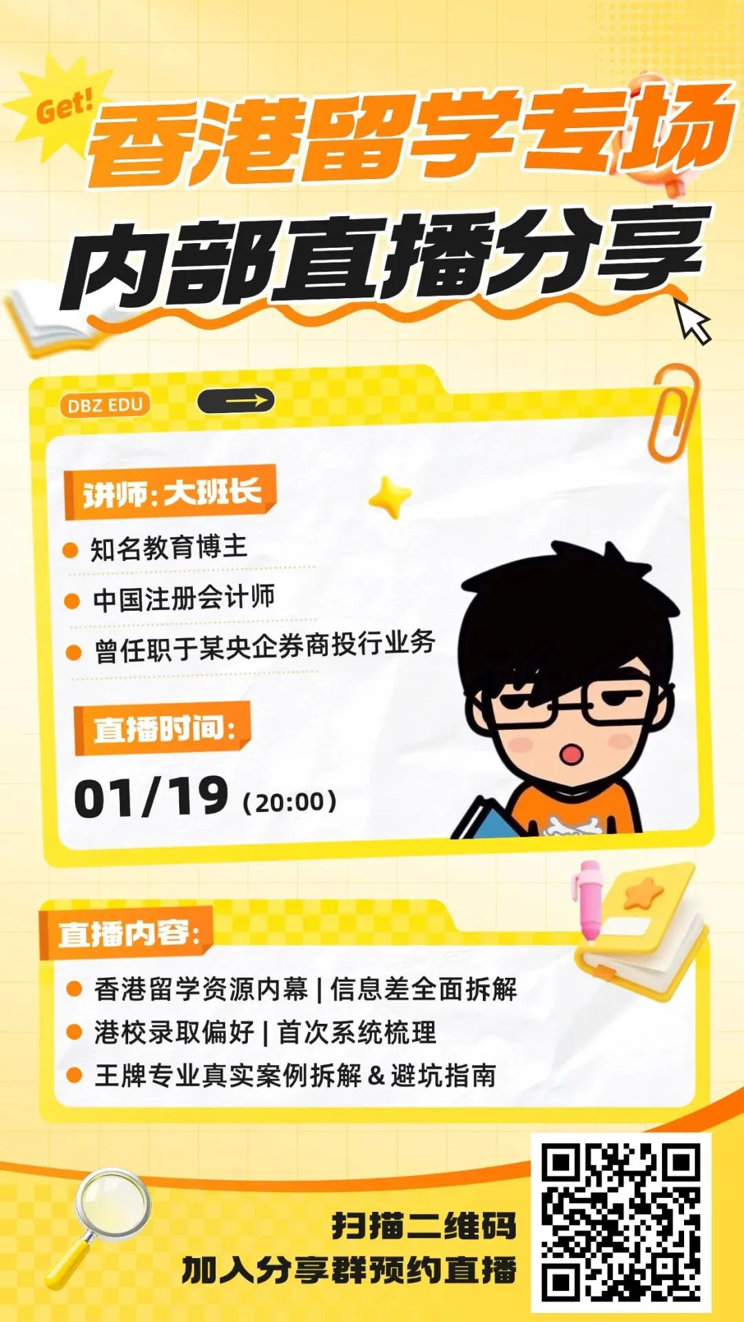 1月19日(下周一)晚上20:00,香港留学内部信息差分享会,不见不散!
