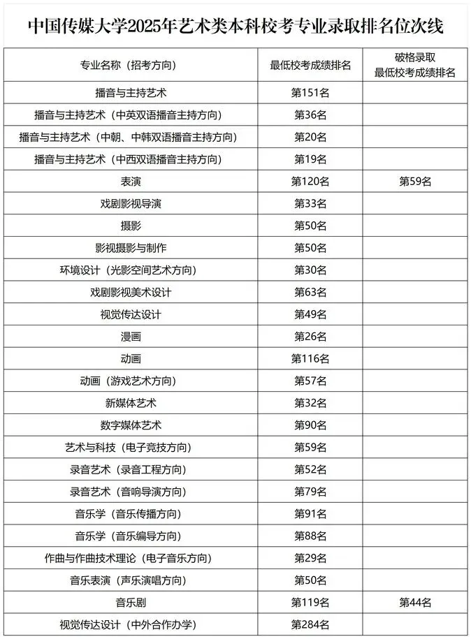 >中国传媒大学2025年浙江录取分数线