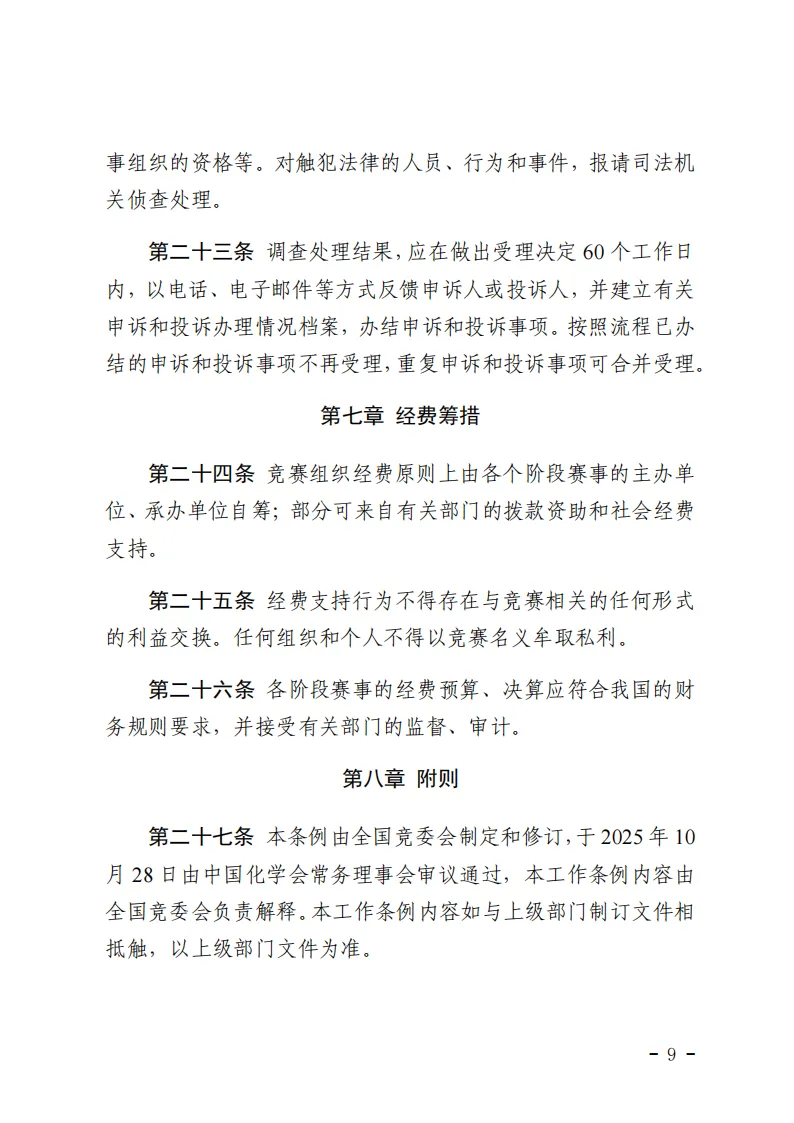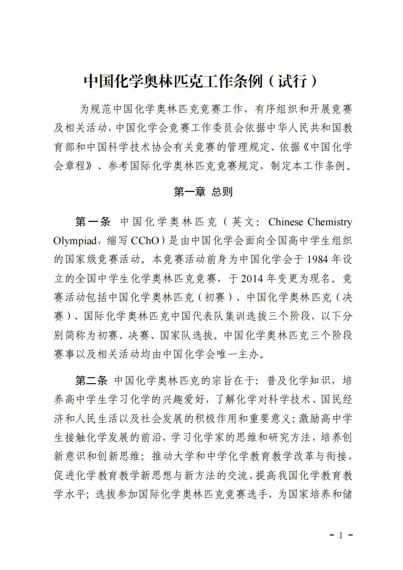 近日,中国化学会制定了最新版《中国化学奥林匹克工作条例(试行)》、《中国化学奥林匹克实施细则(2025年修订)》两个文件。