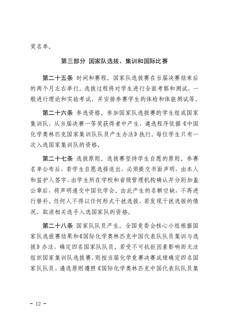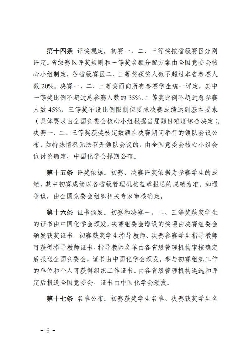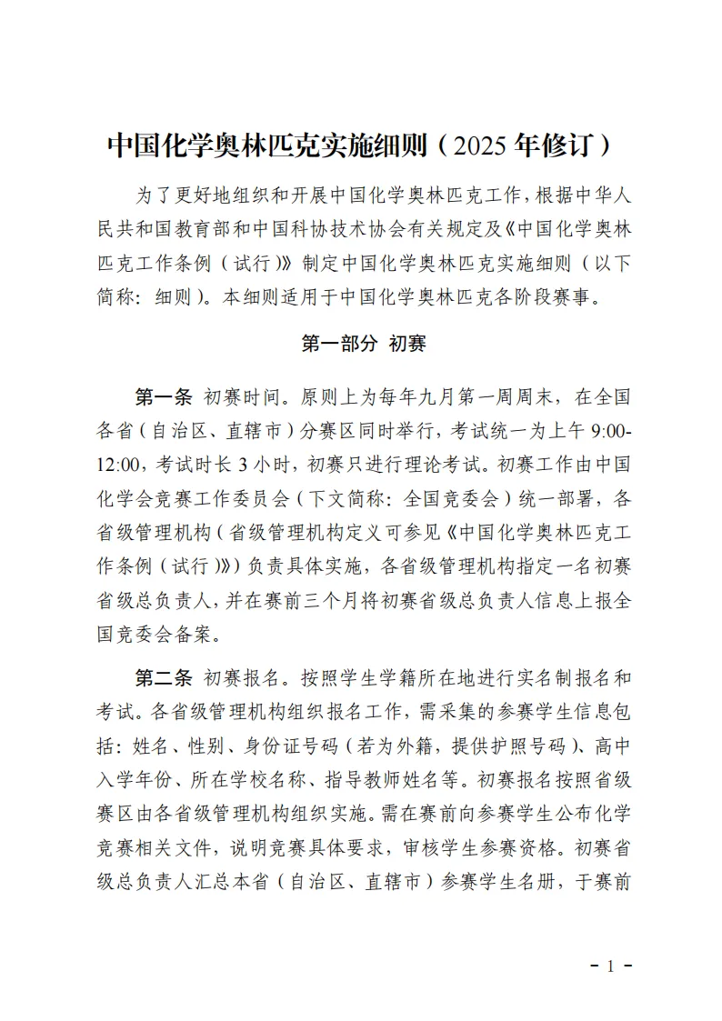 化学竞赛各阶段赛事具体细节,请参考下方《中国化学奥林匹克实施细则(2025年修订)》文件。