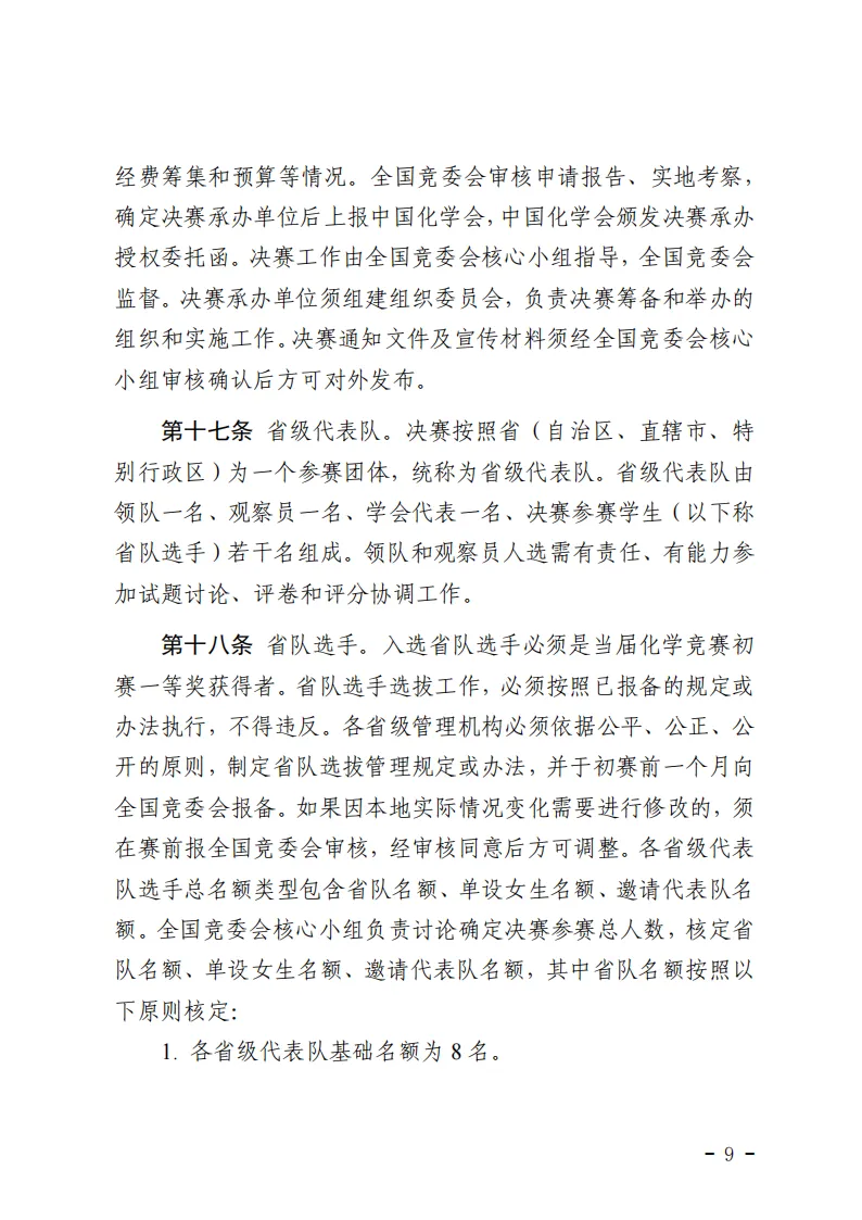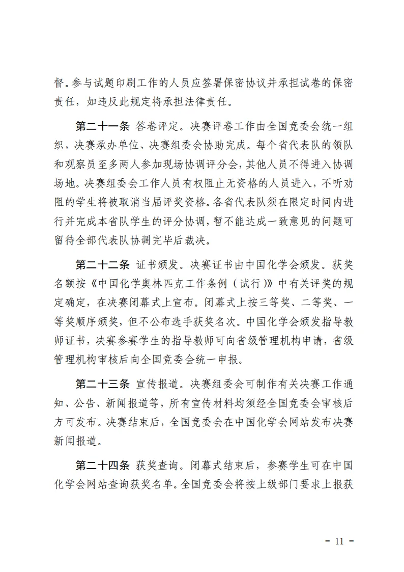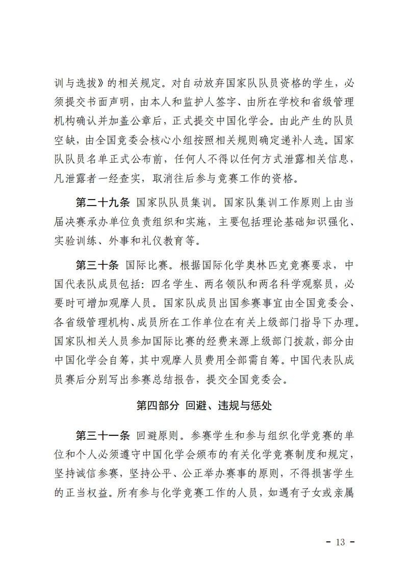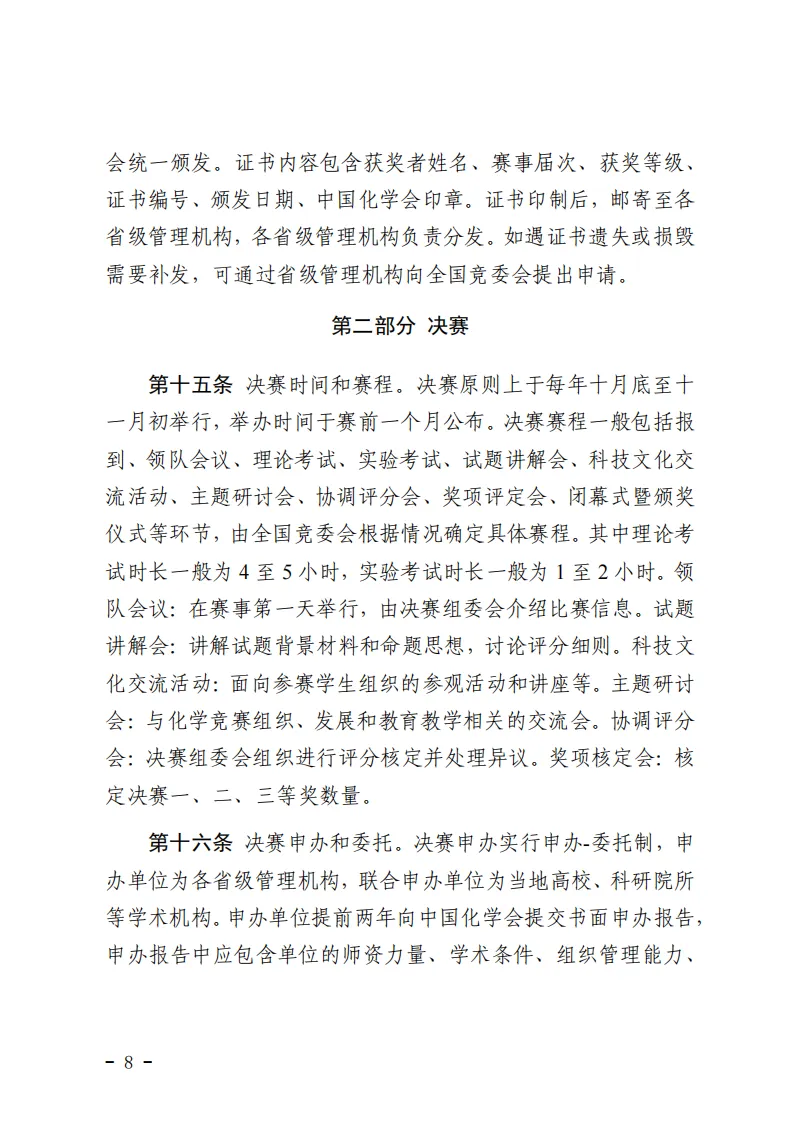 化学竞赛各阶段赛事具体细节,请参考下方《中国化学奥林匹克实施细则(2025年修订)》文件。