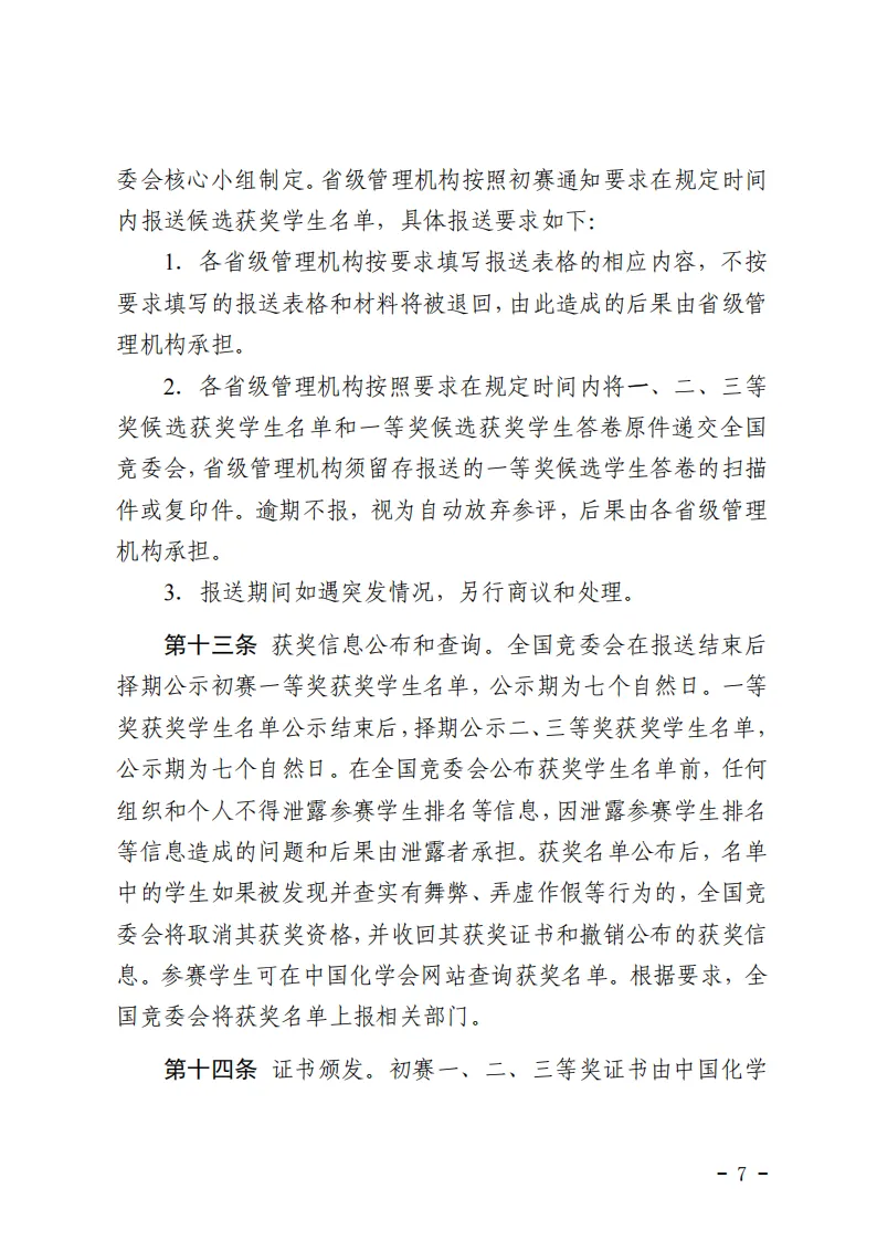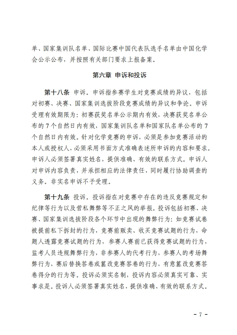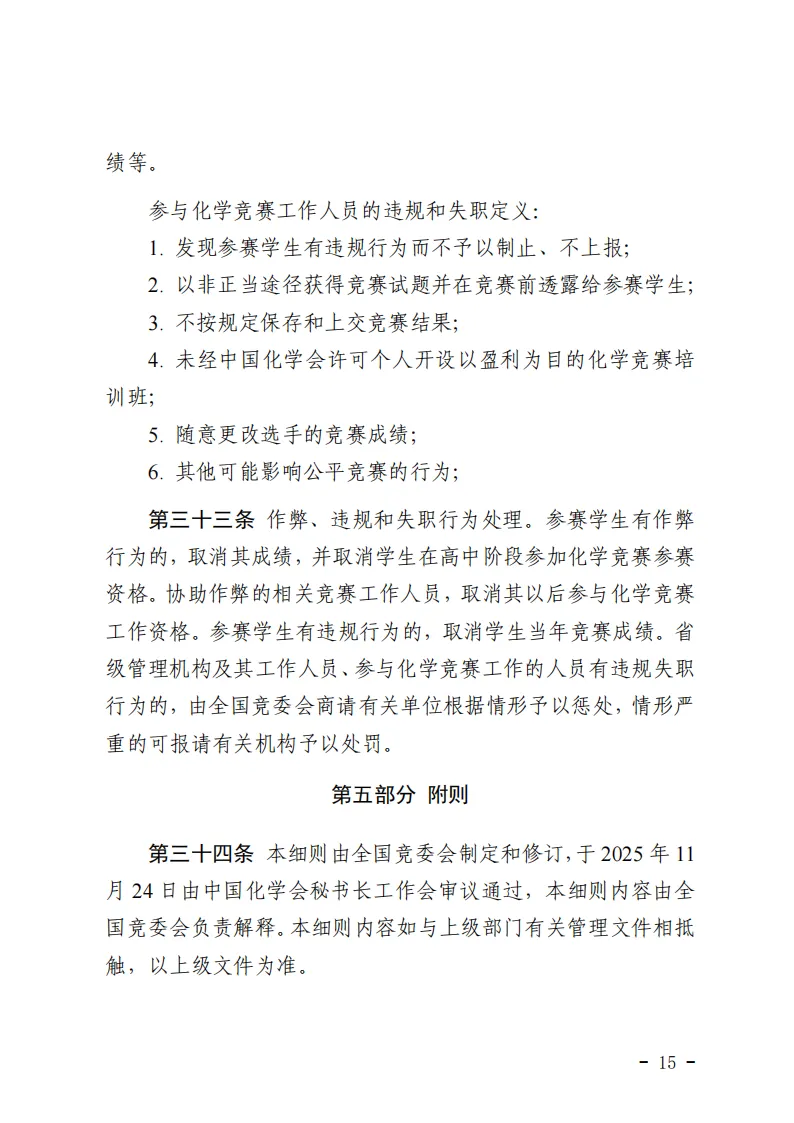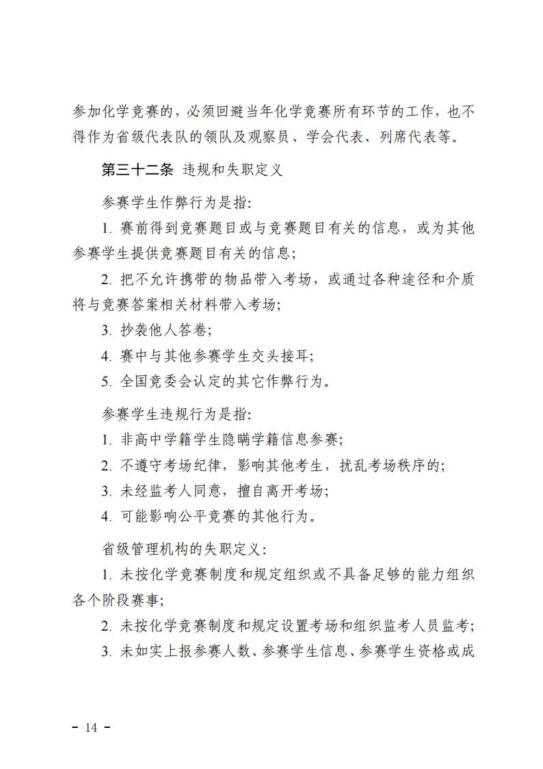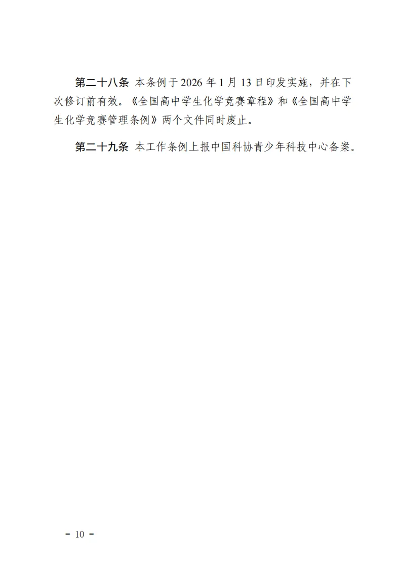 原有的《全国高中学生化学竞赛章程》、《全国高中学生化学竞赛管理条例》、《全国高中学生化学竞赛实施细则》三个文件同时废止。