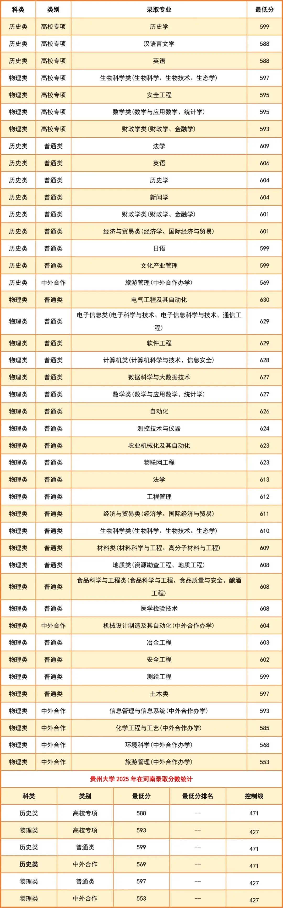 贵州大学2025年专业排名及本科录取线