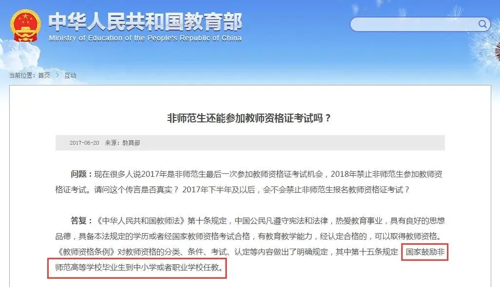 其中考试报名、现场确认、报名费用每个省份时间可能不一致,以当地考试公告安排为准。❌不是!教资考试不限制师范非师范!国家鼓励非师范高等学校毕业生到中小学或者职业学校任教👇