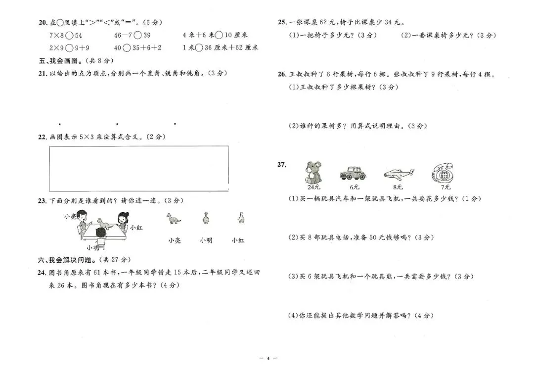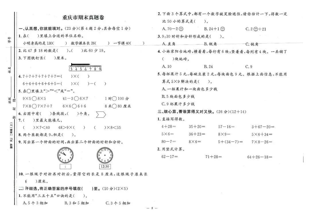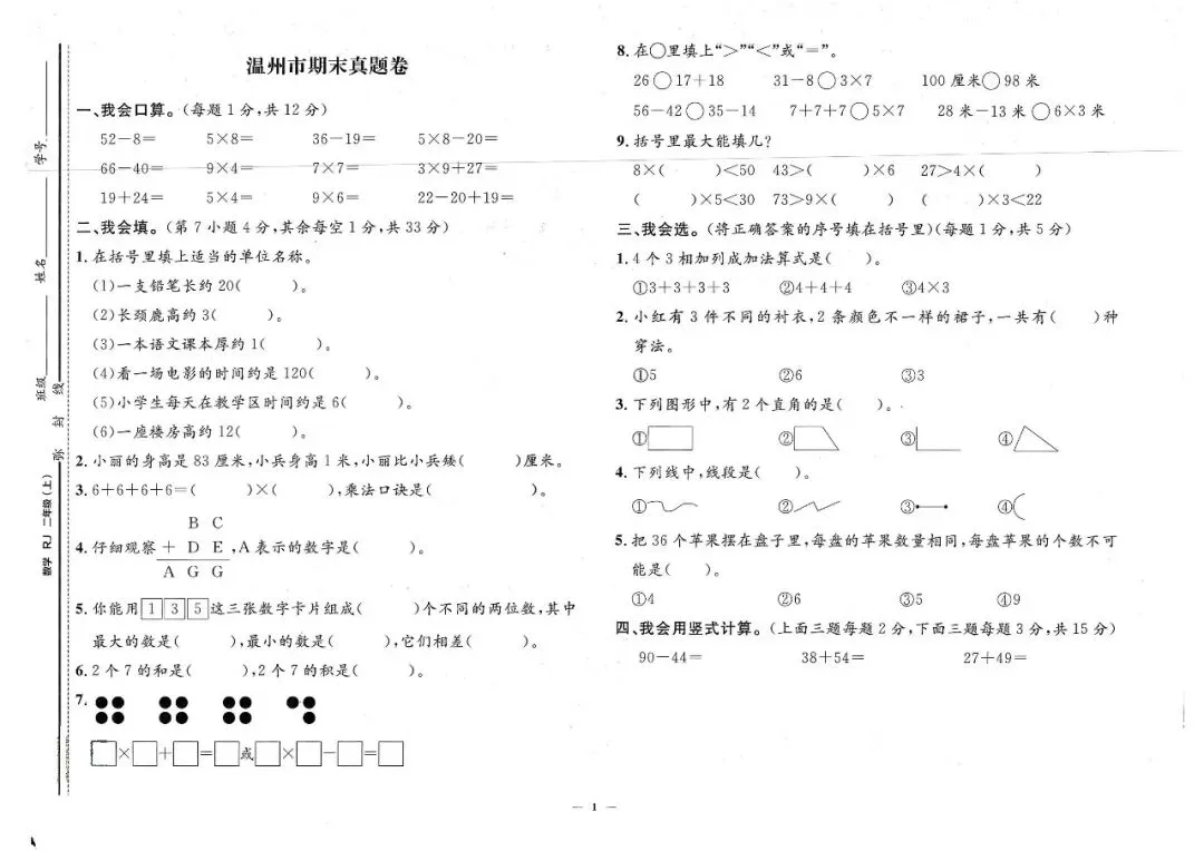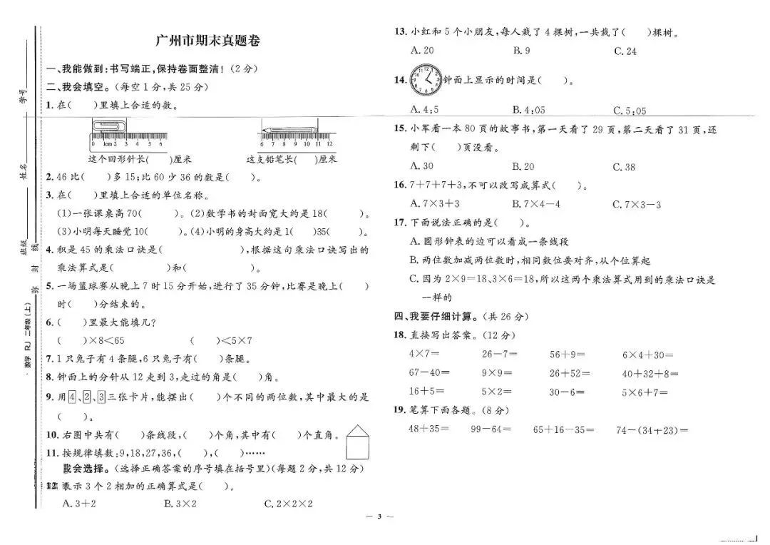 25秋二年级上册人教版数学《各地期末考试真题检测卷》共14套(附答案)高清电子版可打印