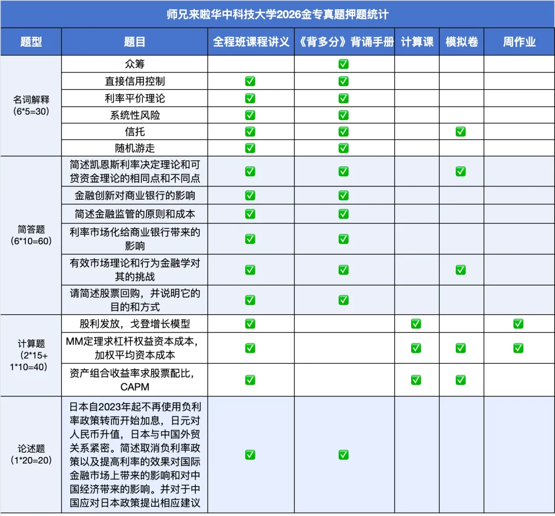 一起看一下今年我们对华科大金专真题的押题情况吧~