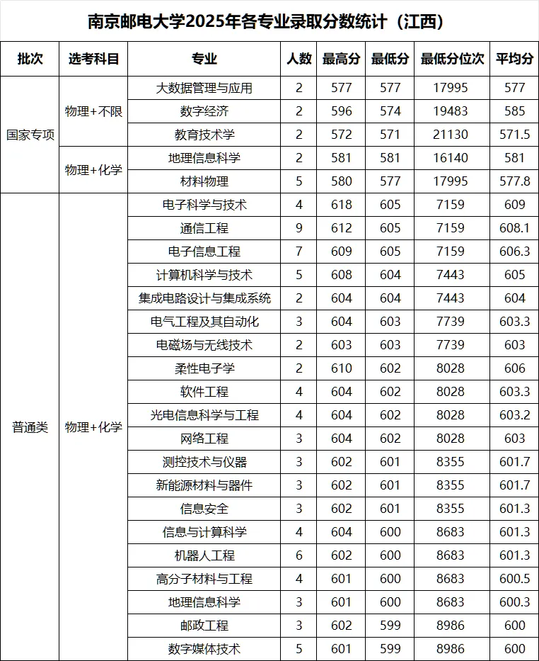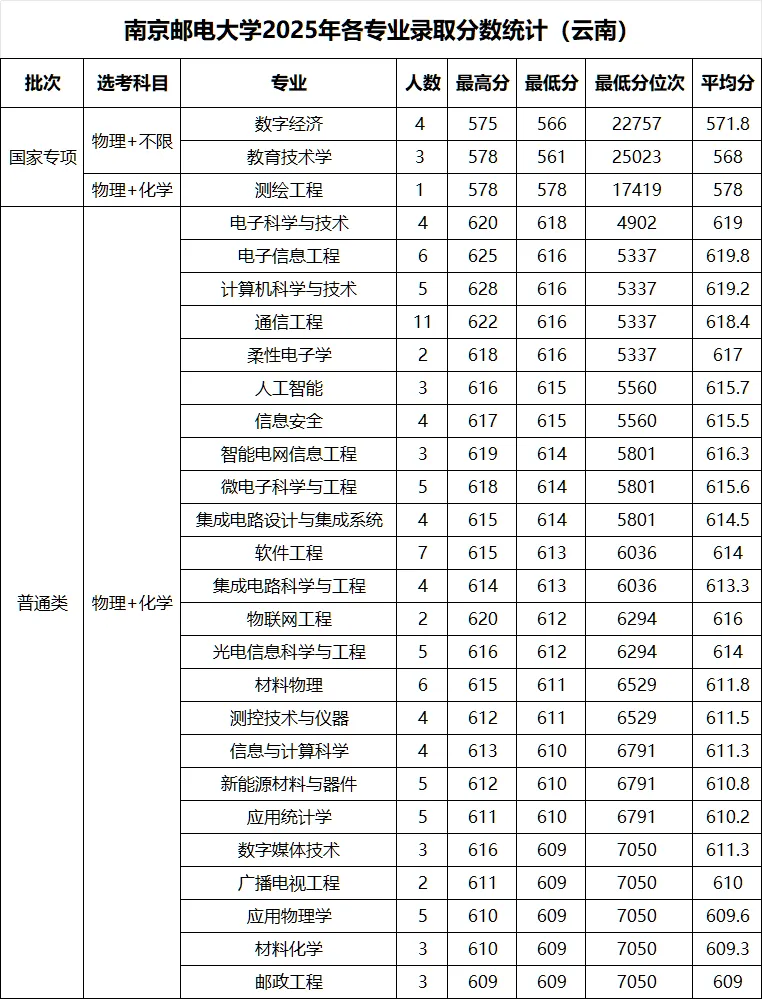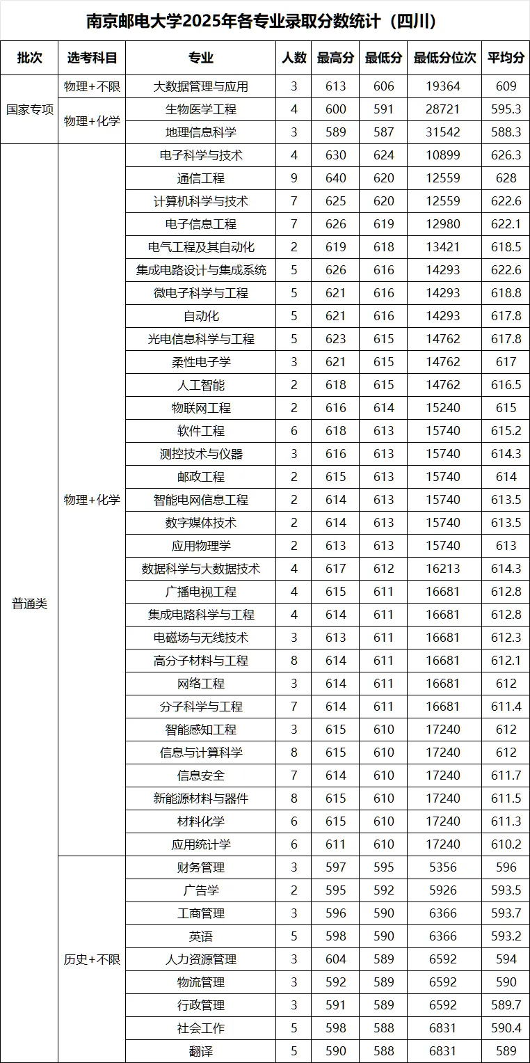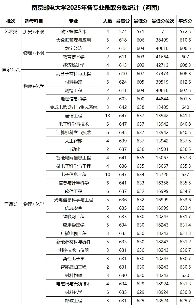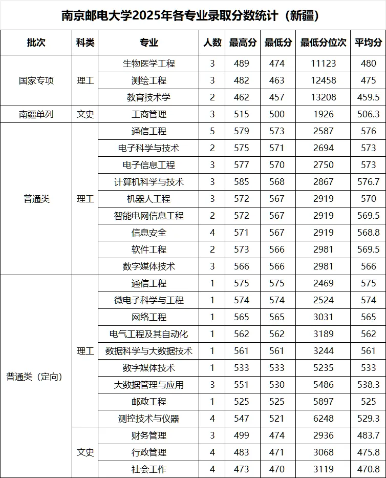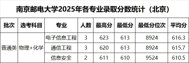 >南京邮电大学 2025年各省录取分