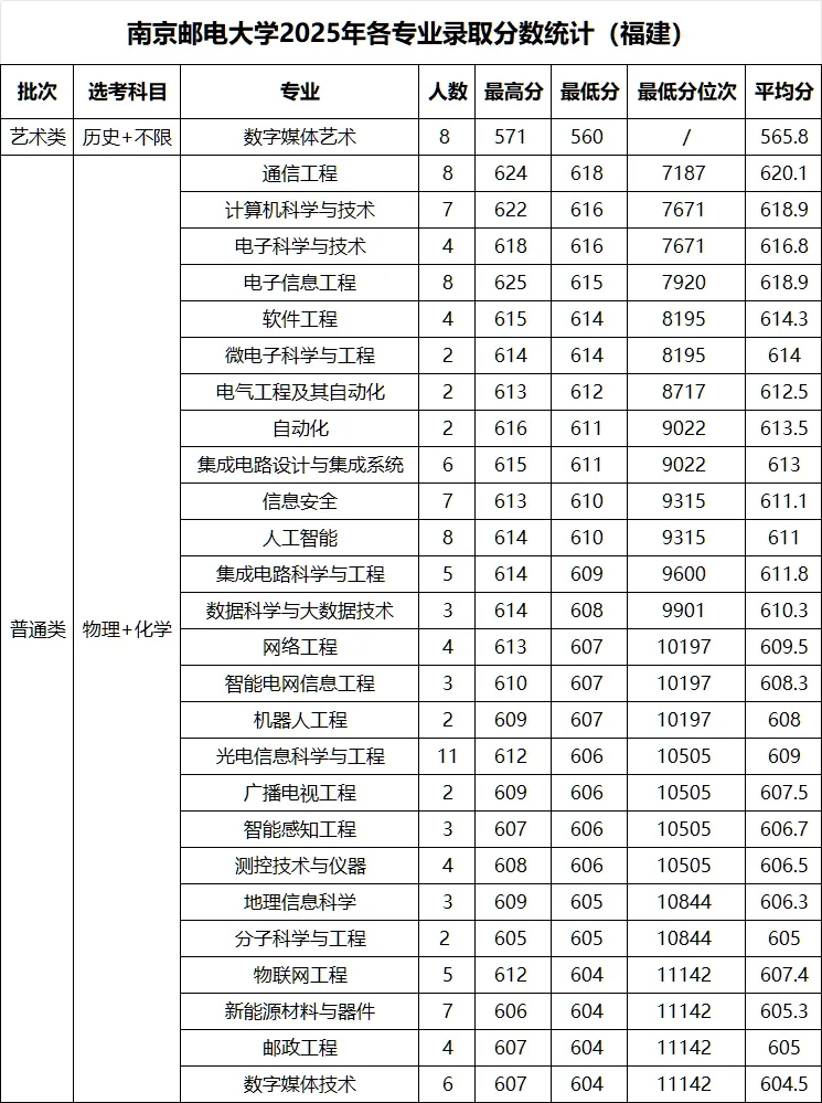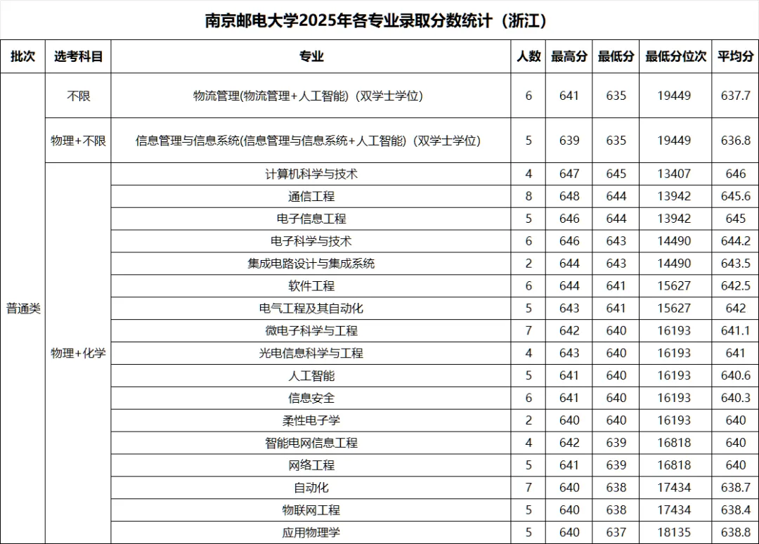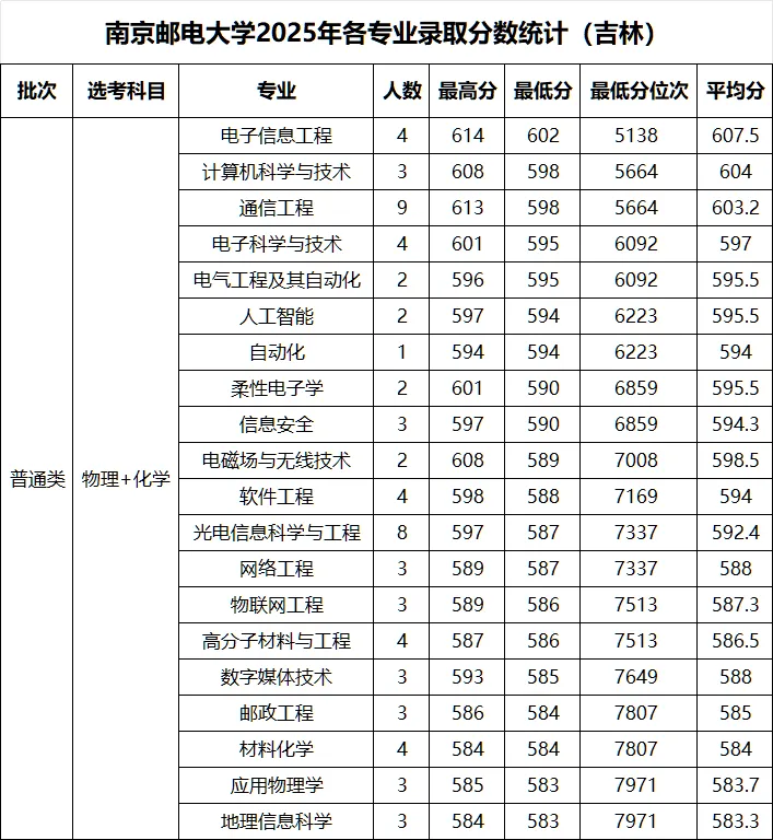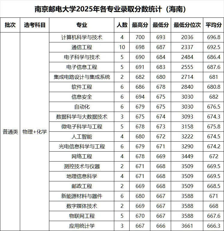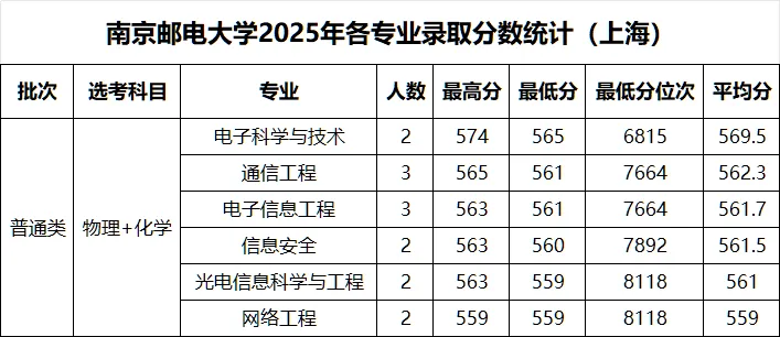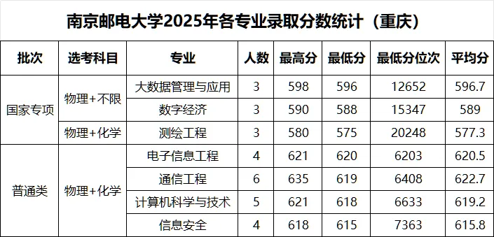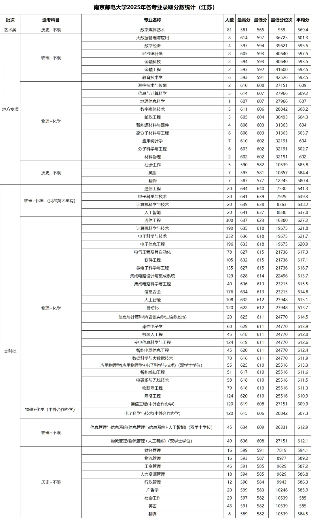 >南京邮电大学 2025年各省录取分