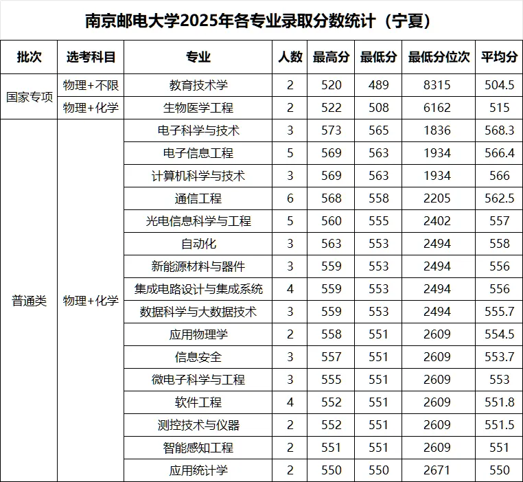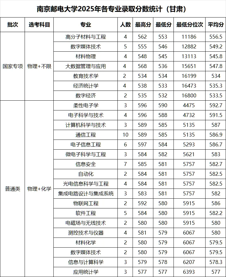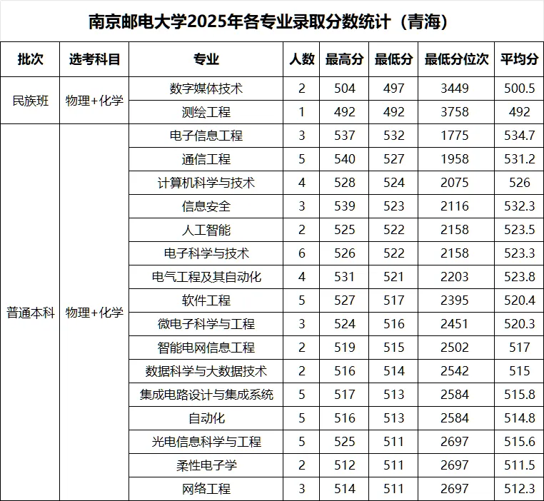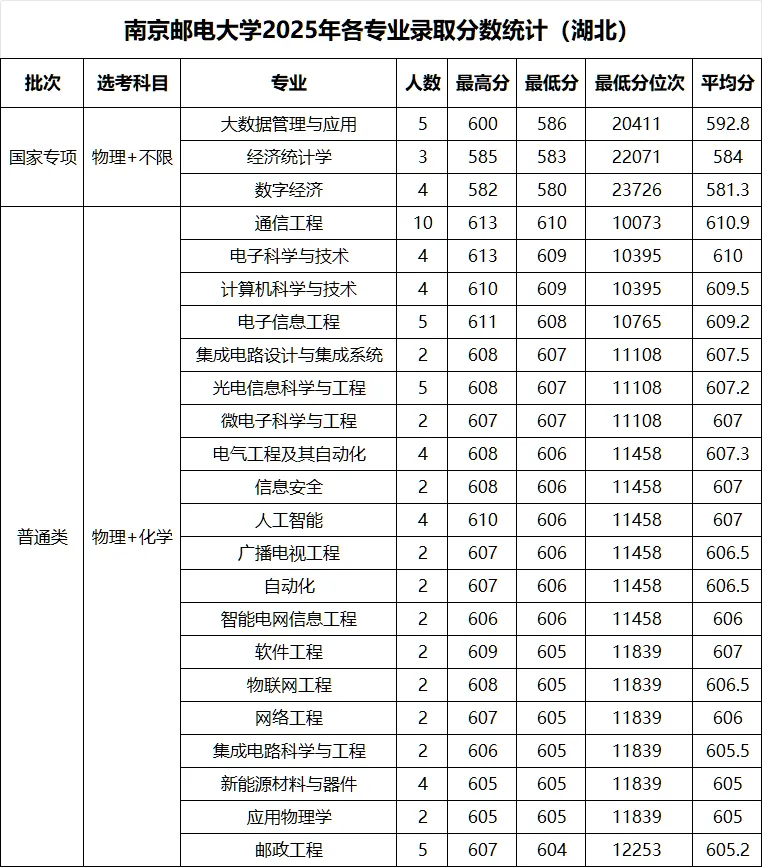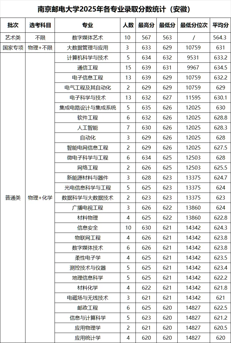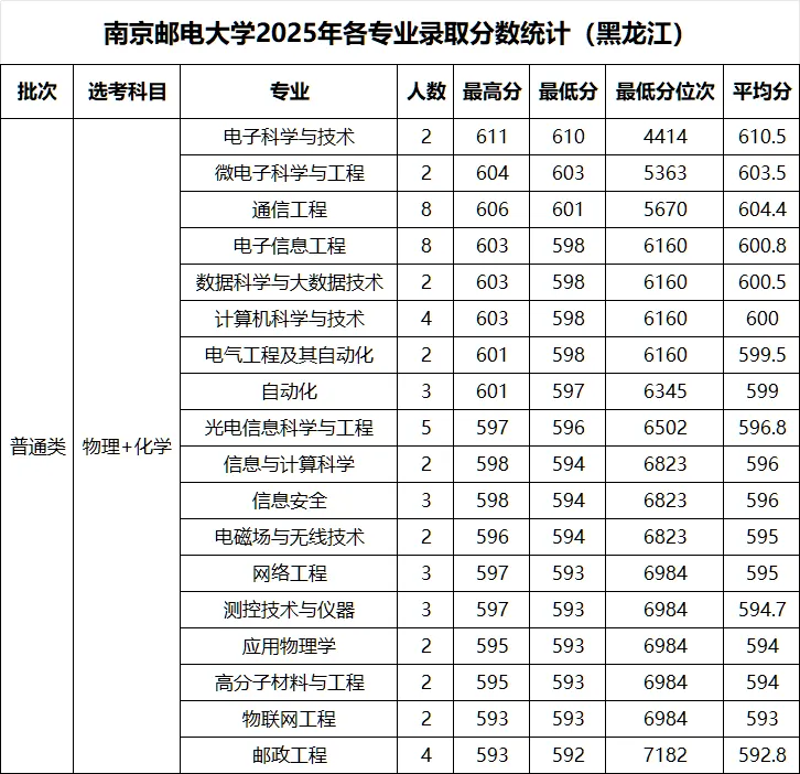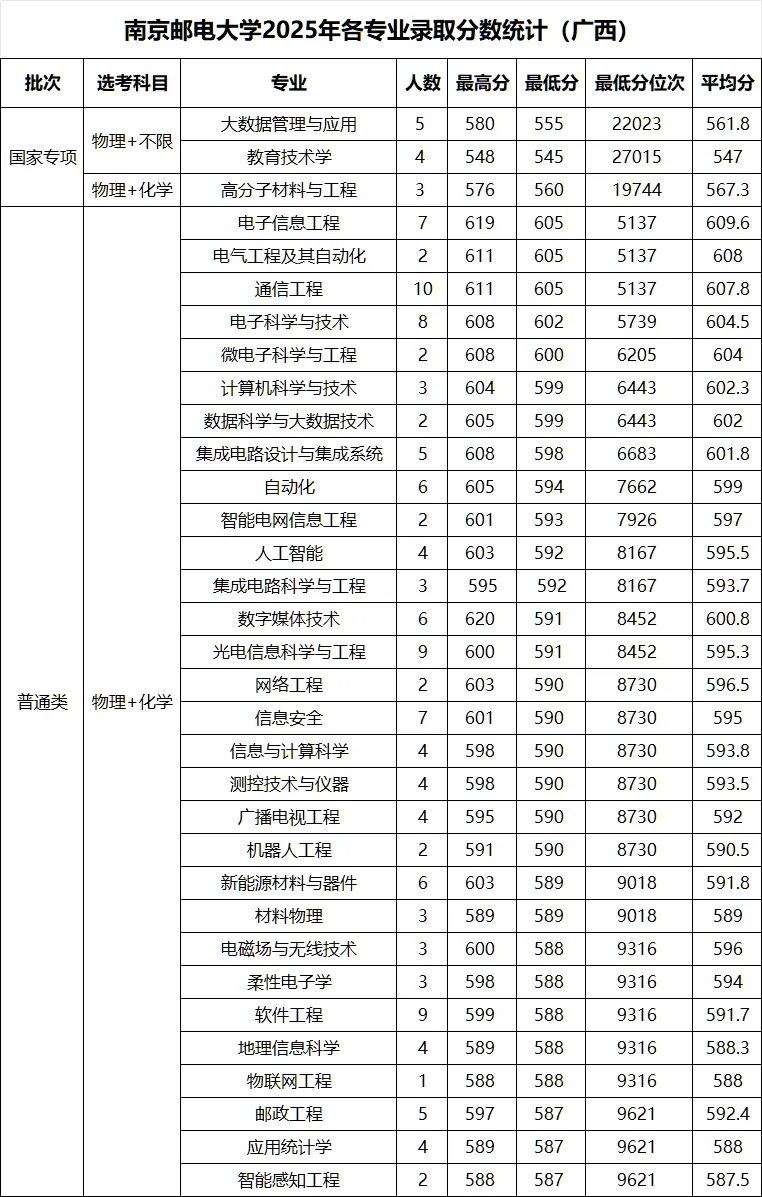 >南京邮电大学 2025年各省录取分