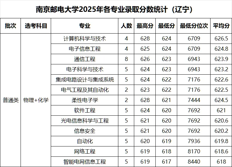 山东省一段线最低596分(位次27947),热门专业分数集中在610-617分,计算机科学与技术最高617分(位次14220),通信工程、电子信息工程均为615分。此外,河北省物理类本科批最低626分(位次11148),辽宁省物理类本科批最低617分(位次8681),浙江省一段线最低635分(位次19807)。
