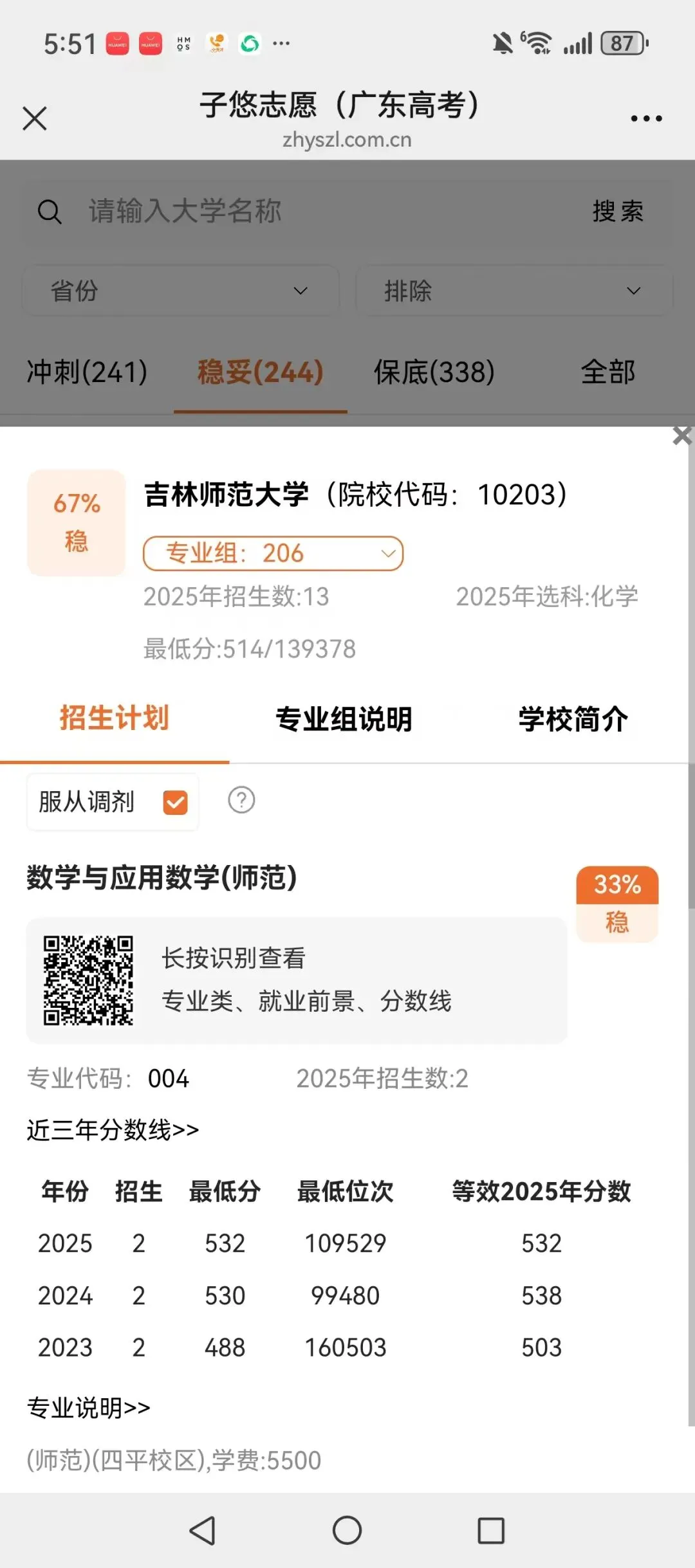 识别左侧二维码,查大学、查专业