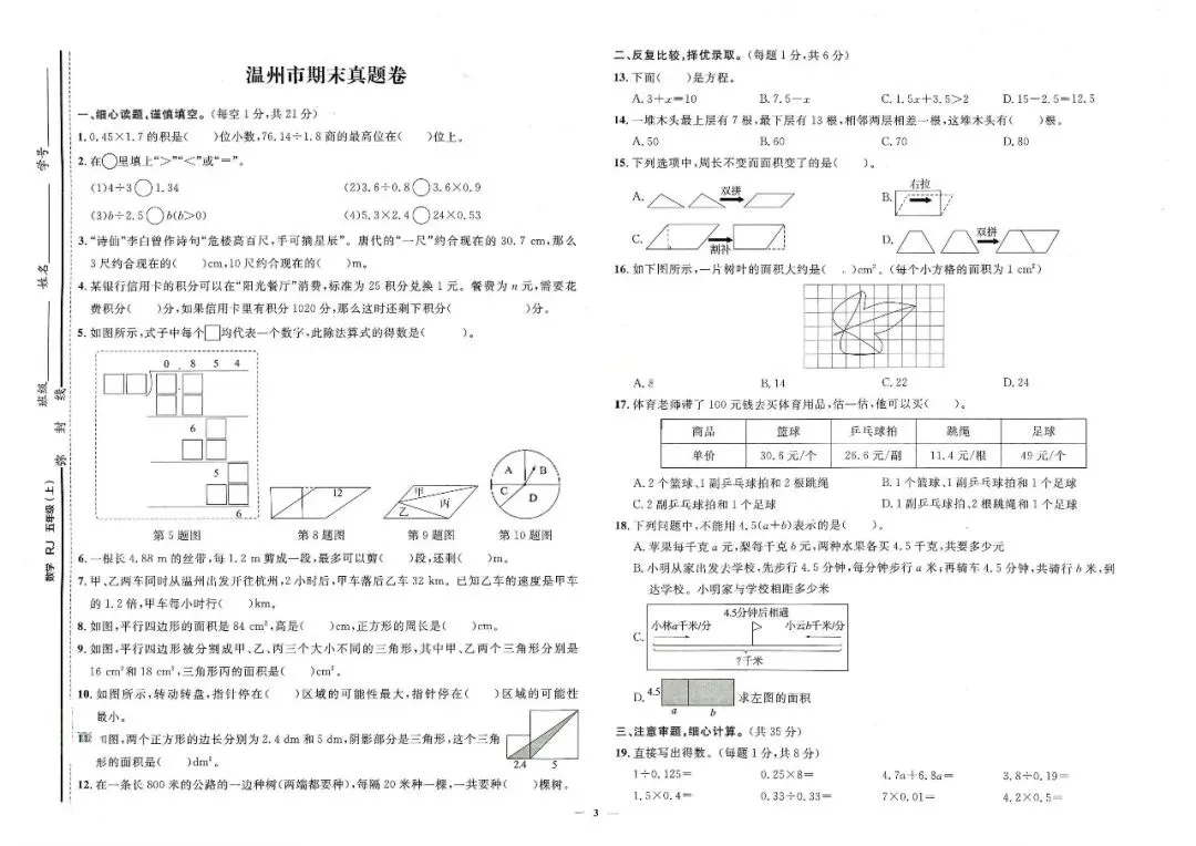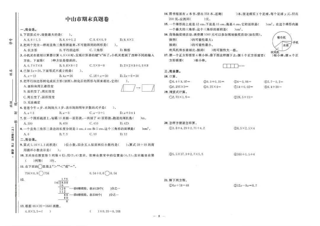 25秋五年级上册人教版数学《各地期末考试真题检测卷》共14套(附答案)高清电子版可打印