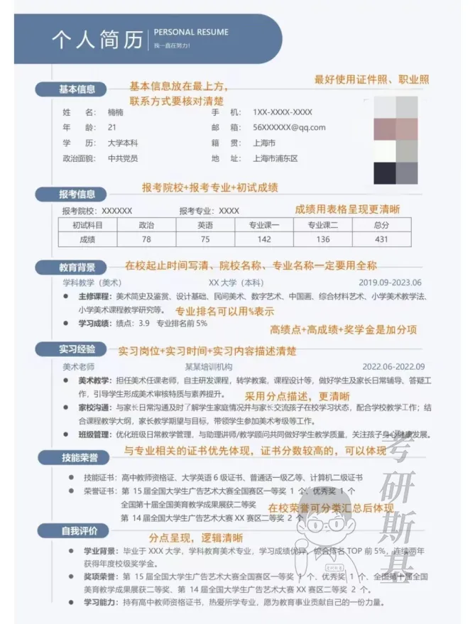 无论是参加复试、还是实习、找工作,都需要个人简历。所以建议大家这段时间可以先梳理一下自己的经历、到网上找找模板、学学书写技巧去准备一份简历,先有初版后续也可以多润色润色。
