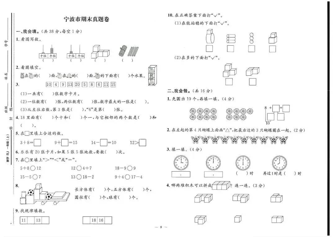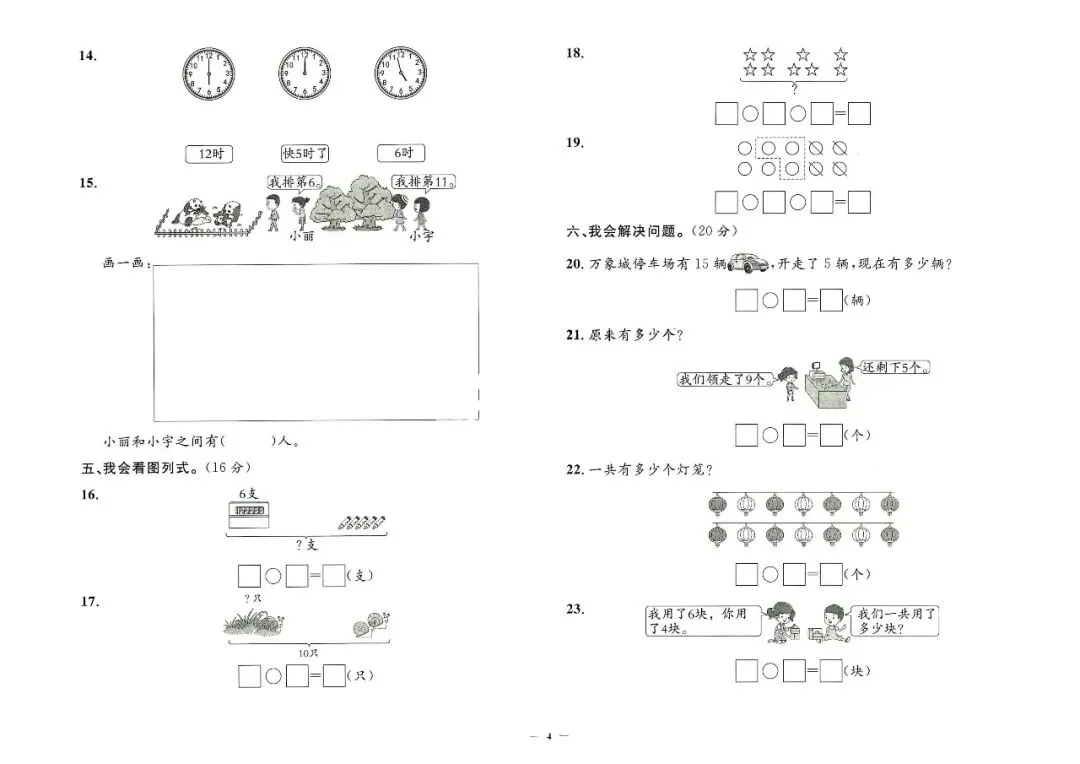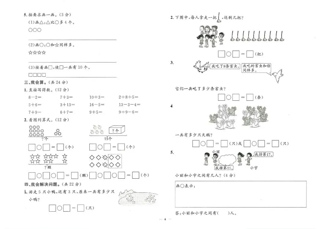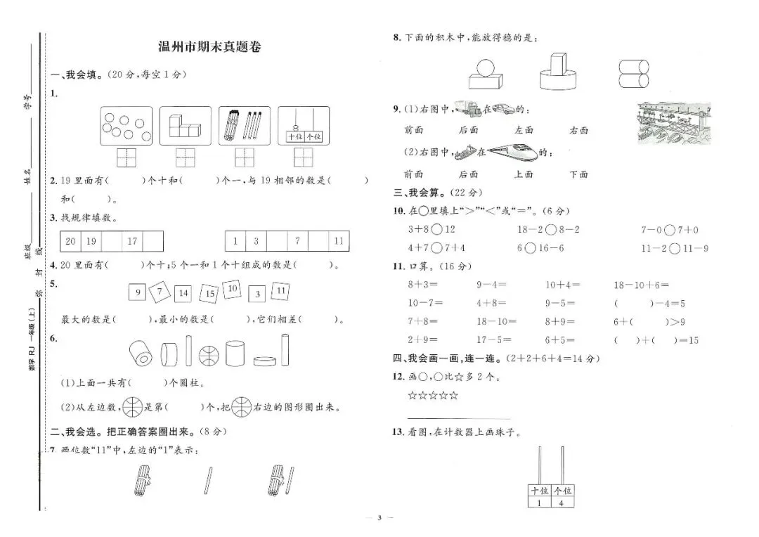 25秋一年级上册人教版数学《各地期末考试真题检测卷》共14套(附答案)高清电子版可打印