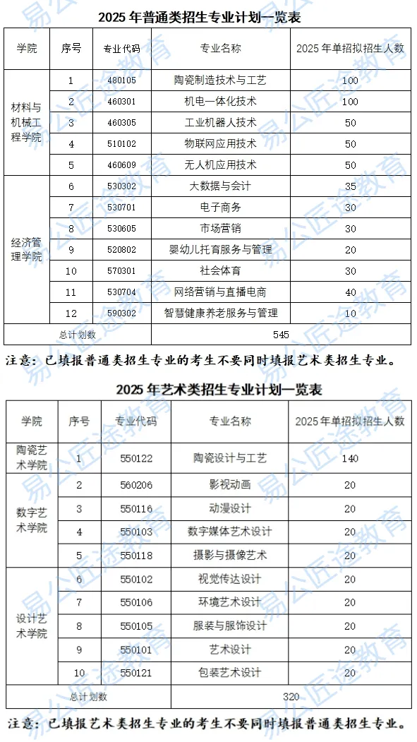 2025年单独招生计划共865人,其中普通类545人,艺术类320人。共1757人报考,录取比例约为49%左右。具体招生计划如下:
