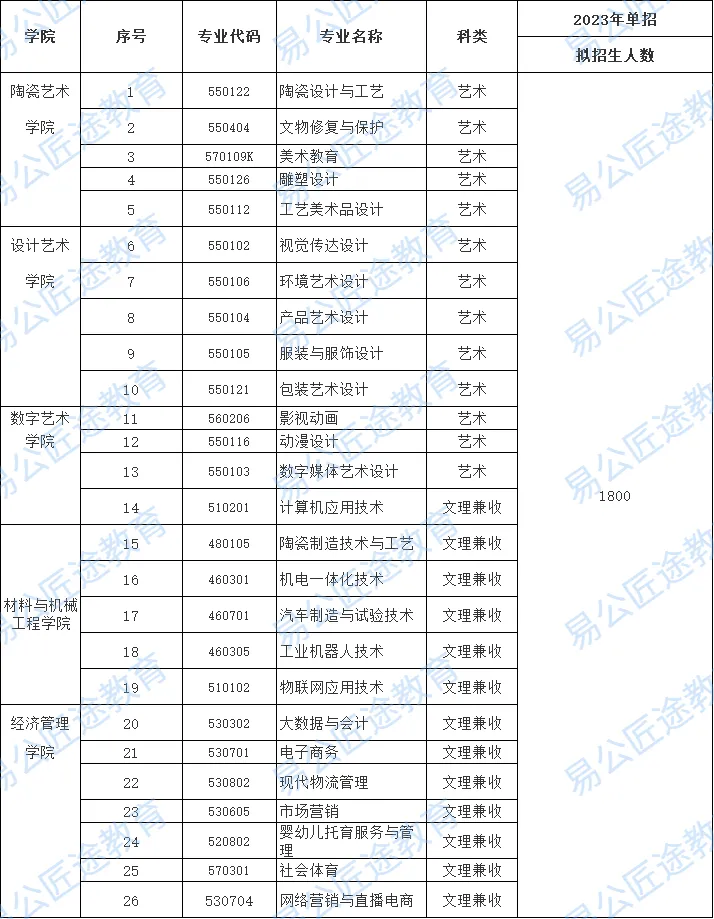 院校地址:江西景德镇