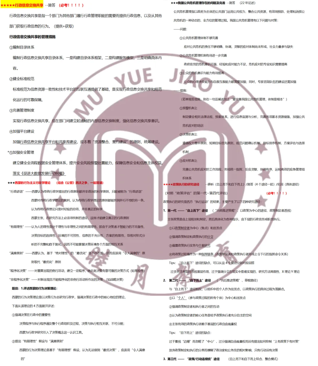 ①第一轮:在睦月老师上课之前把书本过一遍(大概是3-4月过完《公共管理学》《行政管理学》;4-5月过完《西方行政学理论》,5-7月过完《政策科学》和《公共政策学》),不要求记忆,但要记住知识点的大致位置,方便勾重点。