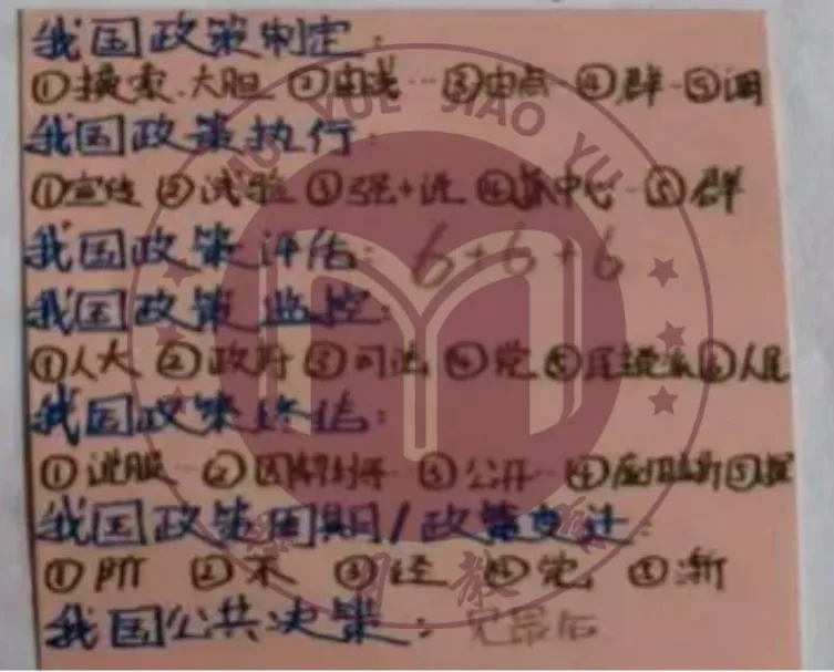 《政策科学(陈振明)》应该会是大家备考专业课遇到的最难的一座大山,知识点密集且非常易混,不过也不要畏惧,学这本书就牢记一个方法——“把书越读越薄”,先整体过一遍熟悉一下知识点以及知识点的位置,然后自己开始把书上的知识点用自己的话简单易懂地记在笔记本或者打字在电脑上,形成自己的理解(具体可以见图7),