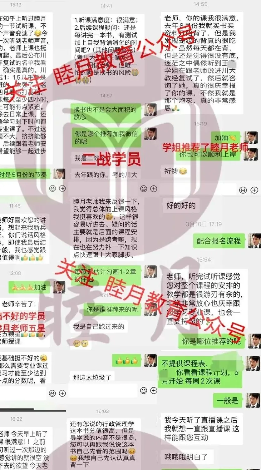 从2018-2025,睦月七年深耕公管考研,累计上岸学员500+,其中状元考生30+,包括但不限于2019级川大蒋同学(410分)、20级川大湛同学(415分)、21级川大朱同学(438分)、21级成电张同学(407分)、22级川大王同学(413分)、22级成电张同学(429分)、23级成电黄同学(400分且复试后第1名)、23级西南交大周同学(411分睦月复试班)、23级川大史同学(421分)、24级成电钟同学(424分)、24级川大土管何同学(439分)、行管张同学(430分)、社保宁同学(419分)、教经毛同学(427分)、应急魏同学(404分)、干教李同学(416分)以及25级成电达同学(402分)、西南交大刘同学(373分复试班逆袭为第1名)、川大高同学(424分)、行管宫同学(410分)、政策刘同学、社保李同学、社保高同学(均402分)。