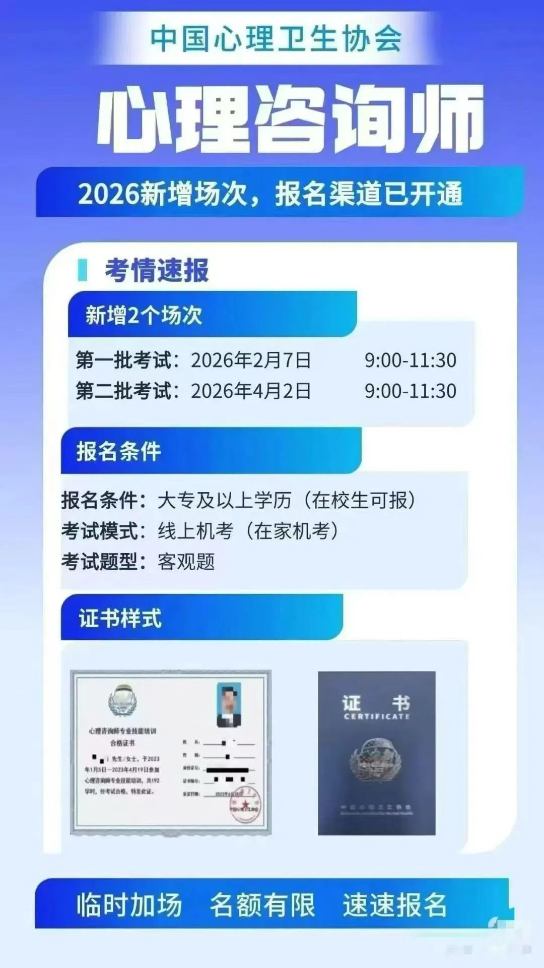从2017年9月起,心理咨询师退出国家职业资格目录,国家心理咨询师二三级职业资格考试自2003年开始至2018年5月全面结束。国家二级/三级心理咨询师证取消,并不代表取消职业和职业标准,由过去的职业资格评价改为社会化的职业技能等级认定。