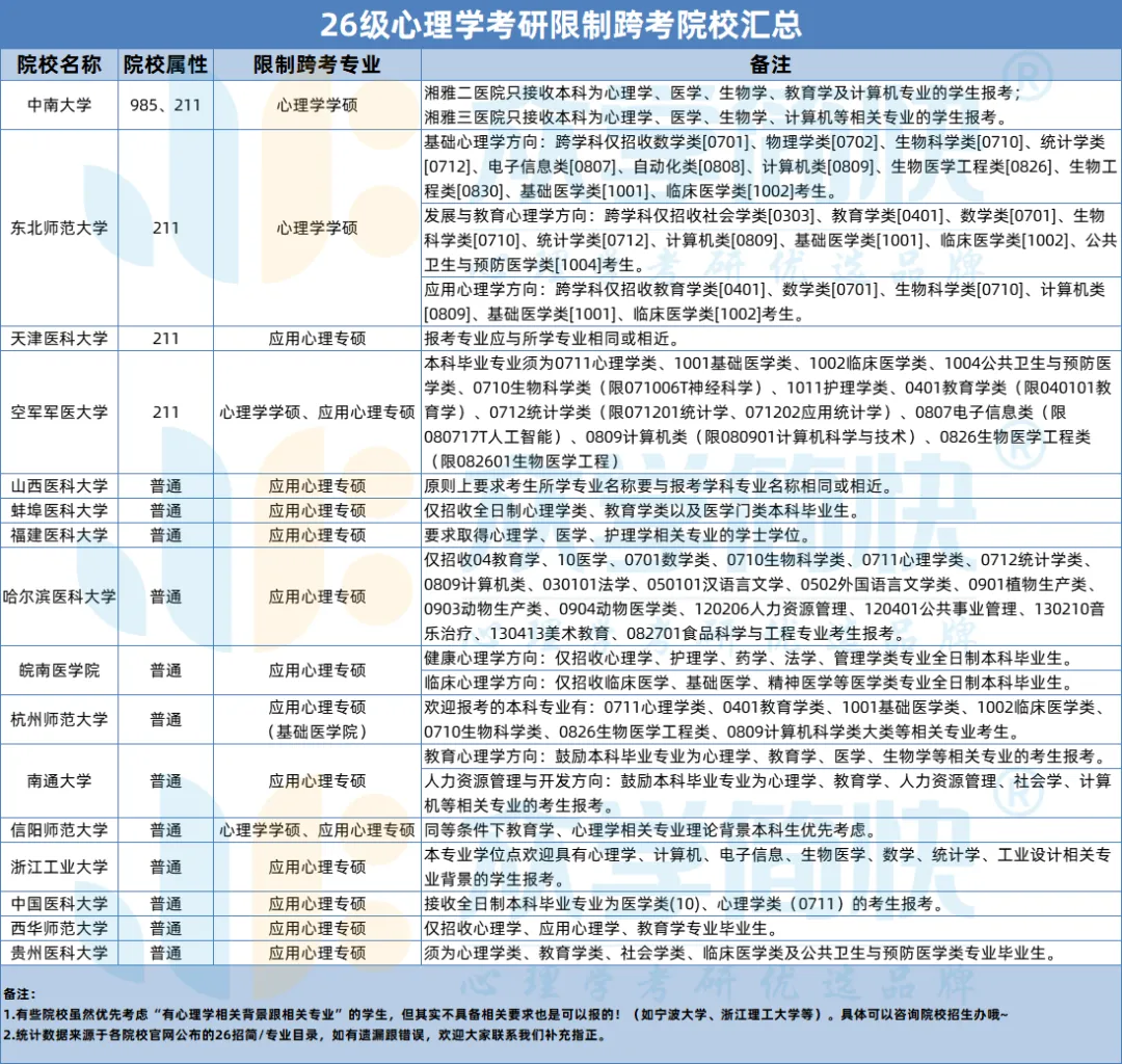 为了帮助27级心理学考研er更好的择校复习,小萌汇总了【26级心理学考研限制跨考院校】,可参考👇