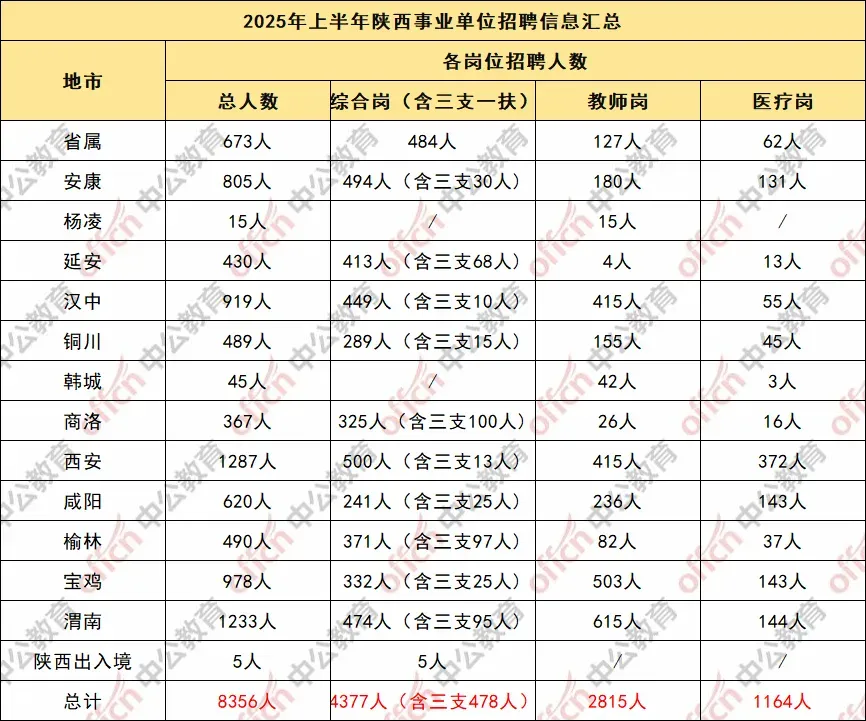 小鱼整理了2025上半年陕西事业单位招聘职位表,全省招聘8356人。