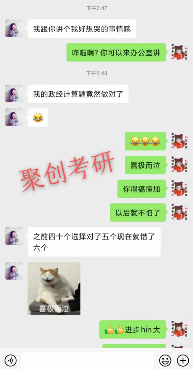 校内24小时保卫叔叔巡逻,360度摄像头监控,保证你的人身安全和财产安全,让你更加安心备考。聚创考研专注考研辅导21年,具有正规办学资质,业务覆盖广东、福建、江西、浙江、重庆、湖南等全国各地,多省市高校校企合作单位!在集训营授课的老师都是考研经验丰富、精挑细选的牛师。他们会亲自授课,从重难点精讲、各类专题讲解、真题深度精讲到冲刺模考测评、考前点题等,在各个阶段教你分析高效的解题技巧,让你轻松掌握知识重难点,提高做题效率和准确率。广东聚创考研集训营的课程历年好评如潮,帮助众多考研学子成功上岸。学员对集训营的课程设置、教学质量、服务态度等方面都给予了高度评价。广东聚创考研集训营火热招生中