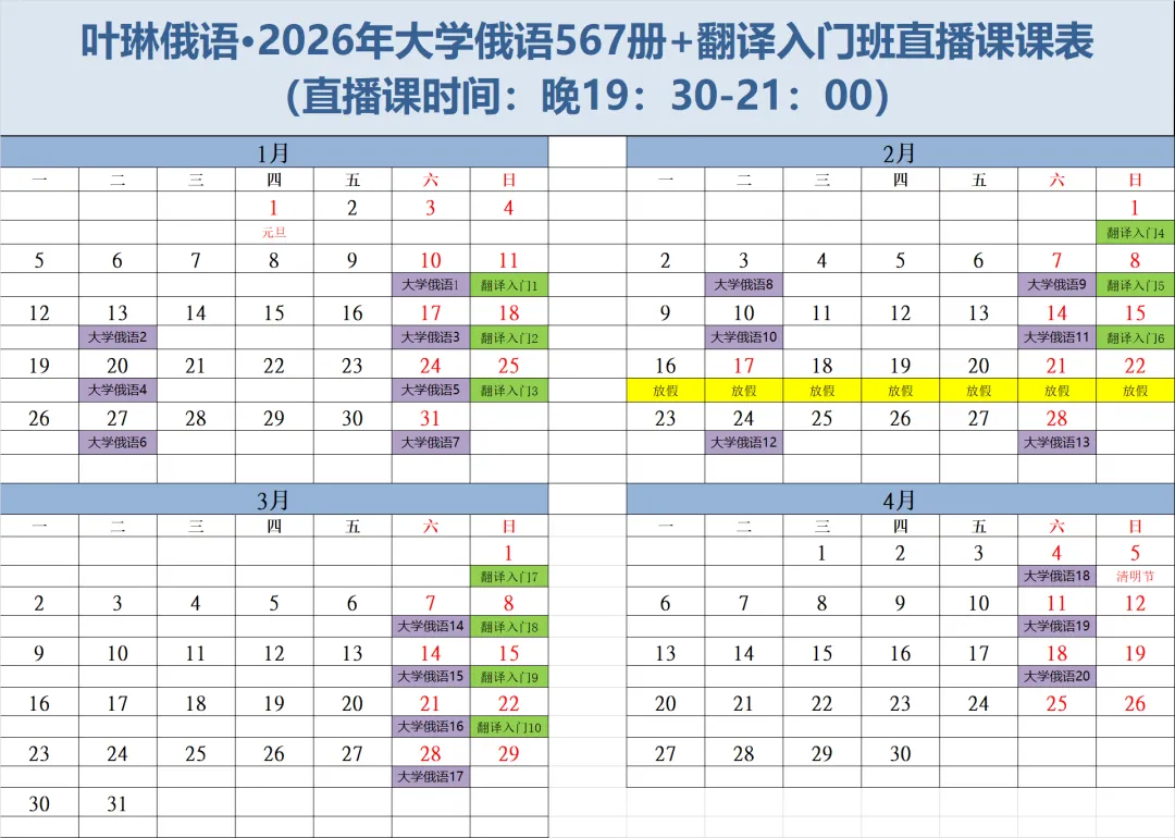 大学俄语567册精讲班(1月10日开课)