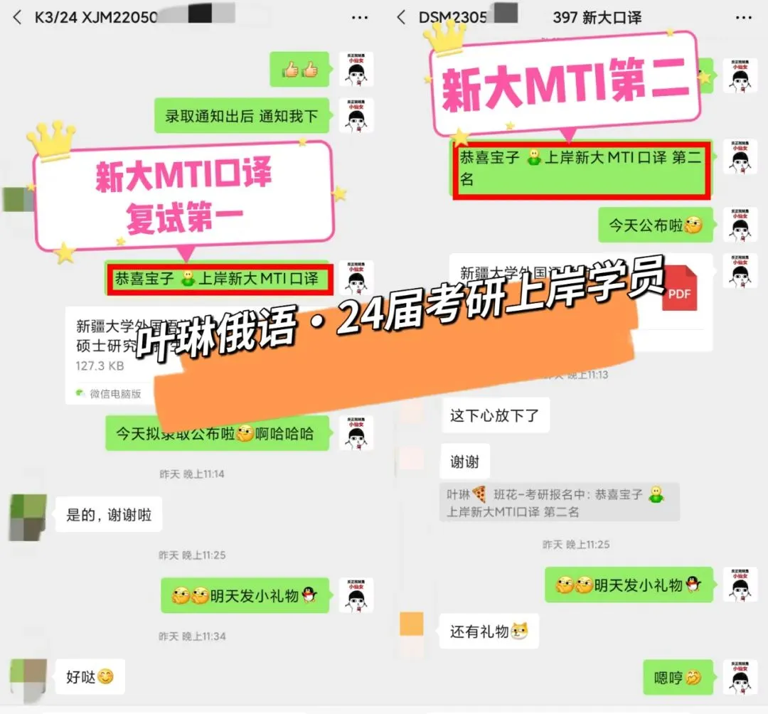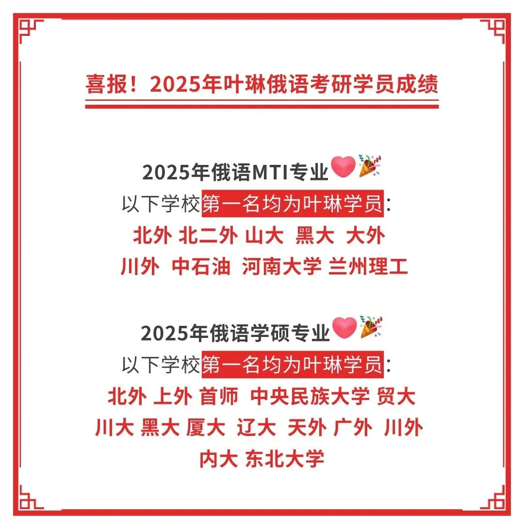 叶琳俄语25届上岸学员!