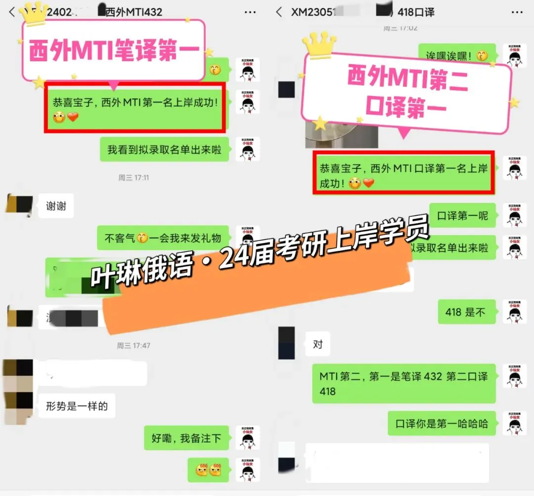 喜报!2024年叶琳俄语考研学员成绩