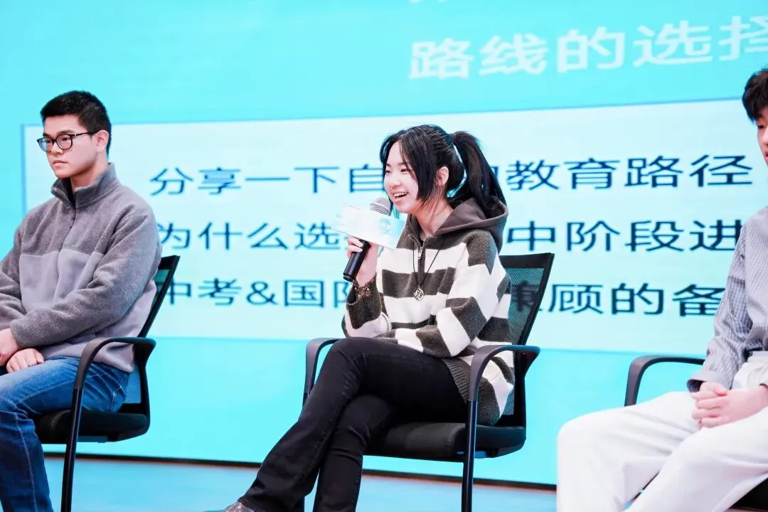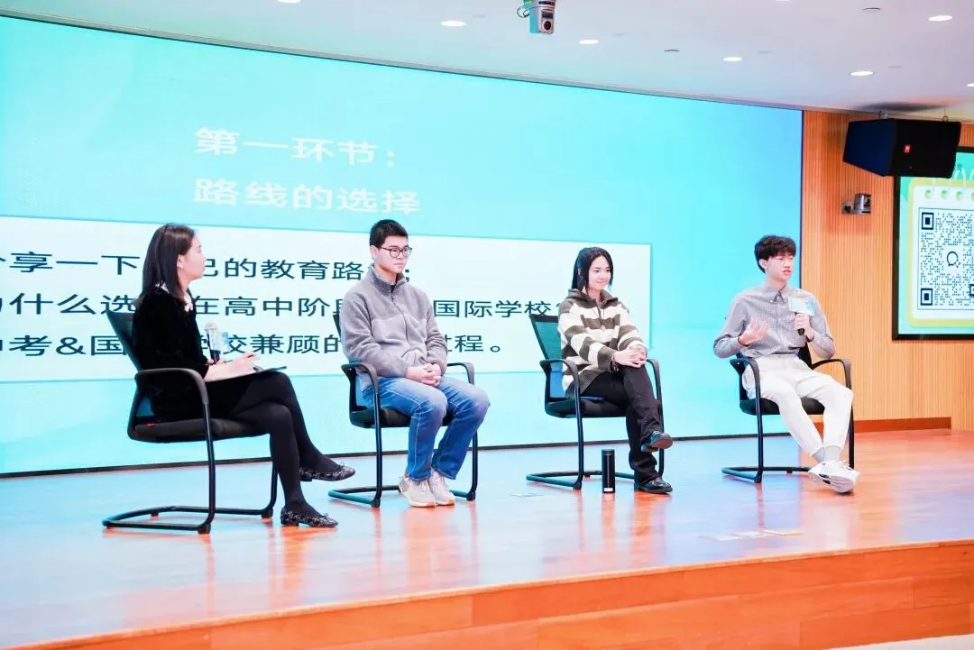 学生论坛环节,三位来自上海平和、领科、星河湾的学生坐在台上,面对台下上百位家长,展开了这场活动中最真实、最不加修饰的对话