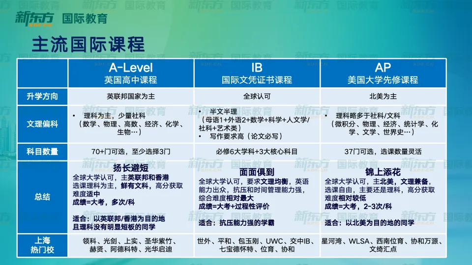 马老师对比了三大课程体系与上海学生特质的适配度: