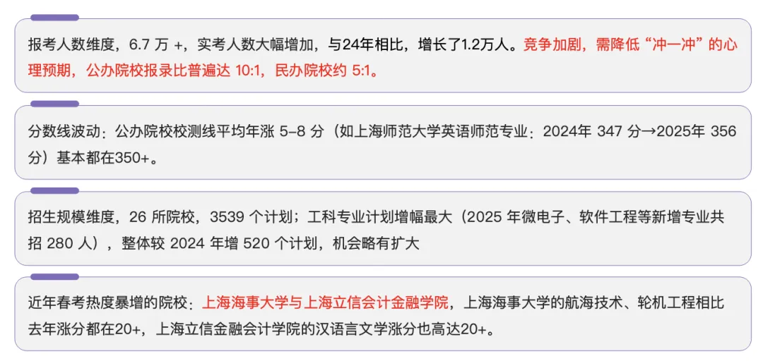 2026年,全市共26所高校参与招生,计划总量稳中有升,但专业结构发生显著调整:新增22个专业,计划招生4015人;同时,15个专业停招,其中上海大学的“电子信息科学与技术”、上戏的“表演”“播音主持”等热门专业退出春考招生,引起家长高度关注。