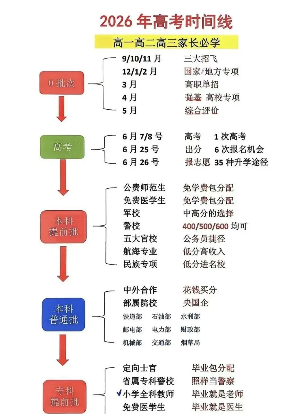 · 关键时间:6月考试 → 6月底出分 → 7月填报 → 8月录取