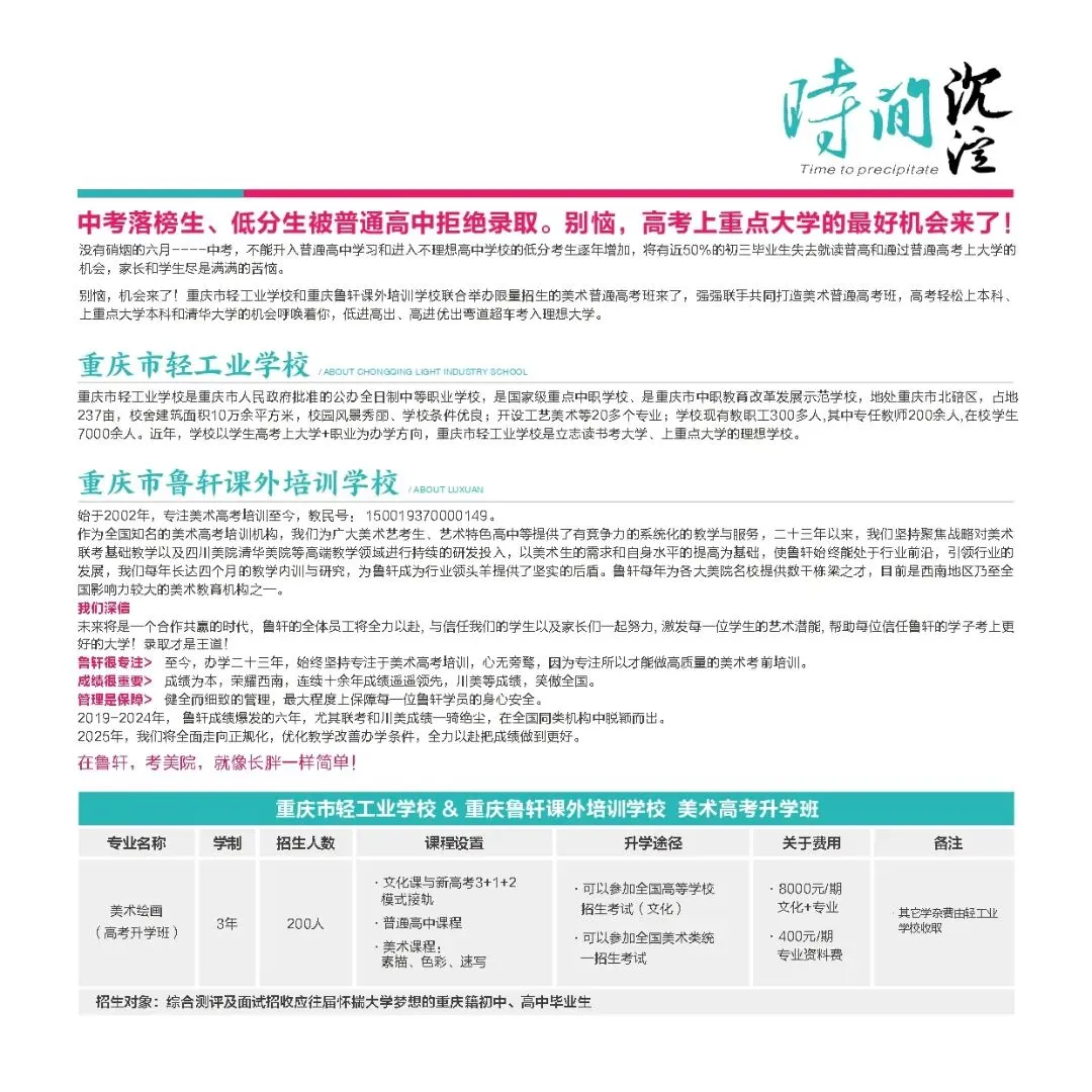 >回顾2025重庆市轻工业学校美术高考升学班招生简章(2026招生中!)