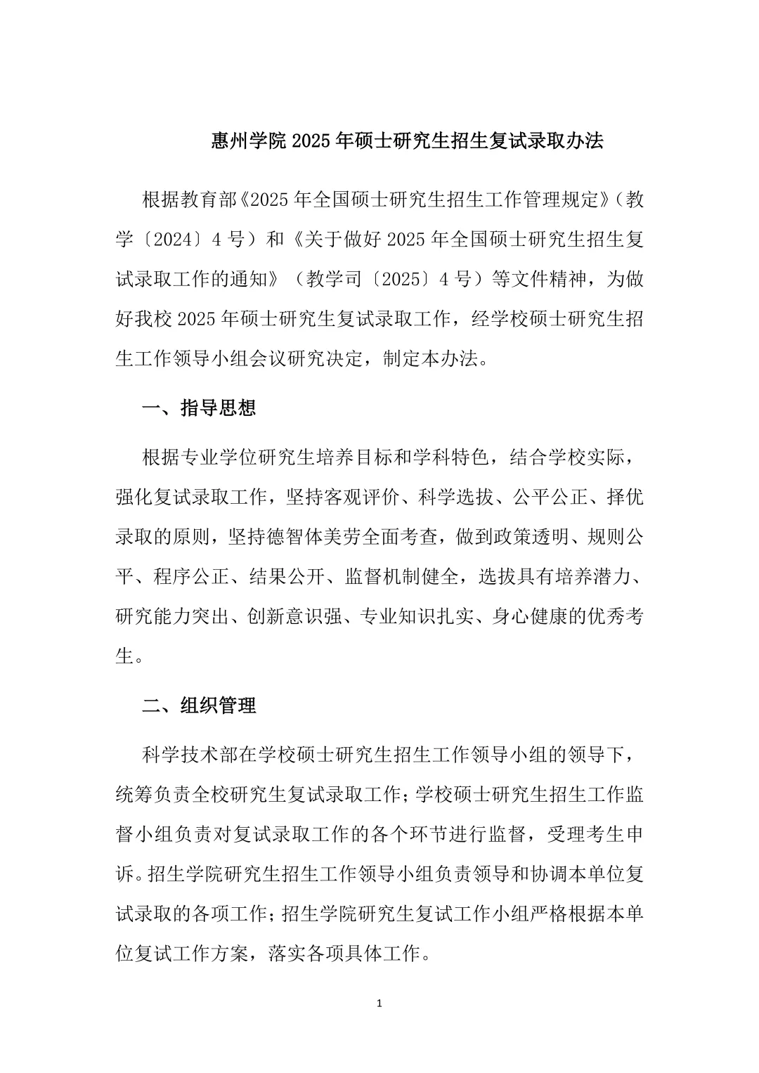 考研复试丨惠州学院2025年硕士研究生招生复试录取办法
