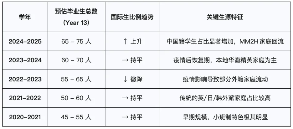 1.本地生比例下降:从半壁江山降至40%,并非本地生源流失,而是国际生源(尤其是中国学生)基数扩大稀释了比例。本地华裔家庭依然视Tenby为首选。
