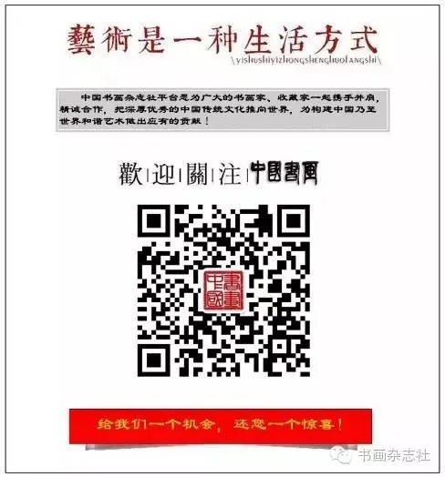 中国书画杂志“书画鉴赏频道”平台是集名家访谈、展览动态、中国书画、西画雕塑、艺海遗珍、大家专栏、艺术名家、艺术市场、精选视频、书画论坛、艺术交流、书画收藏、宣传展览的大型艺术类杂志社微信平台。纵观当今世界,是知识的天下,科技的天下,也是网络的天下。中国书画杂志社平台将充分发挥网络和地域优势,精心组织,强力策划,大力宣传,努力打造国内一流、世界知名的艺术网络媒体。中国书画杂志社平台愿与广大的书画家、收藏家一起携手并肩,精诚合作,把深厚优秀的中国传统文化推向世界,为构建中国乃至世界和谐艺术做出应有的贡献!