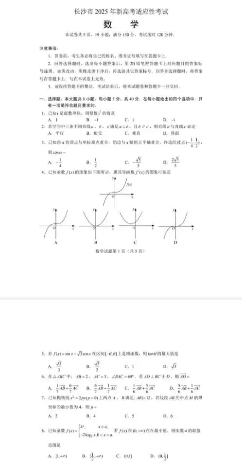 >长沙市2025年高三适应性考试(全科)